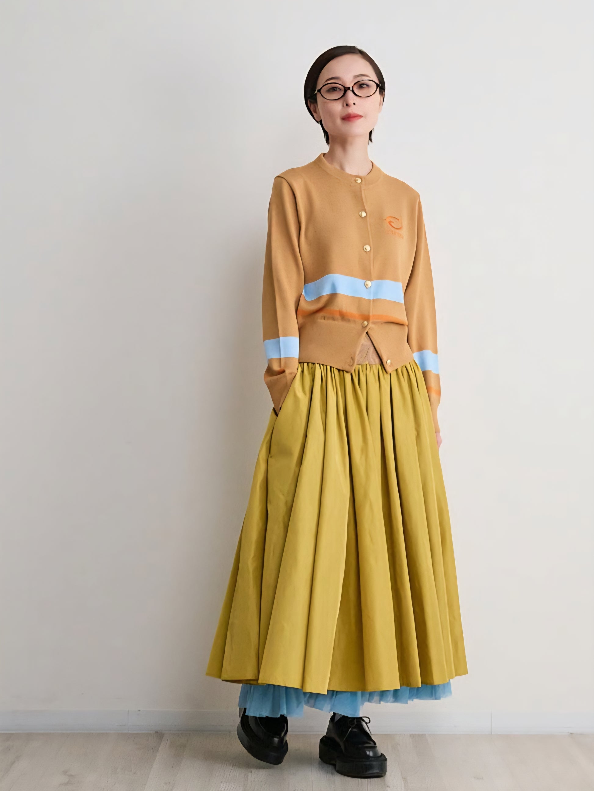 ストレッチ性があるのでダブつきを回避してスカートなどに合わせやすいサイズ感。