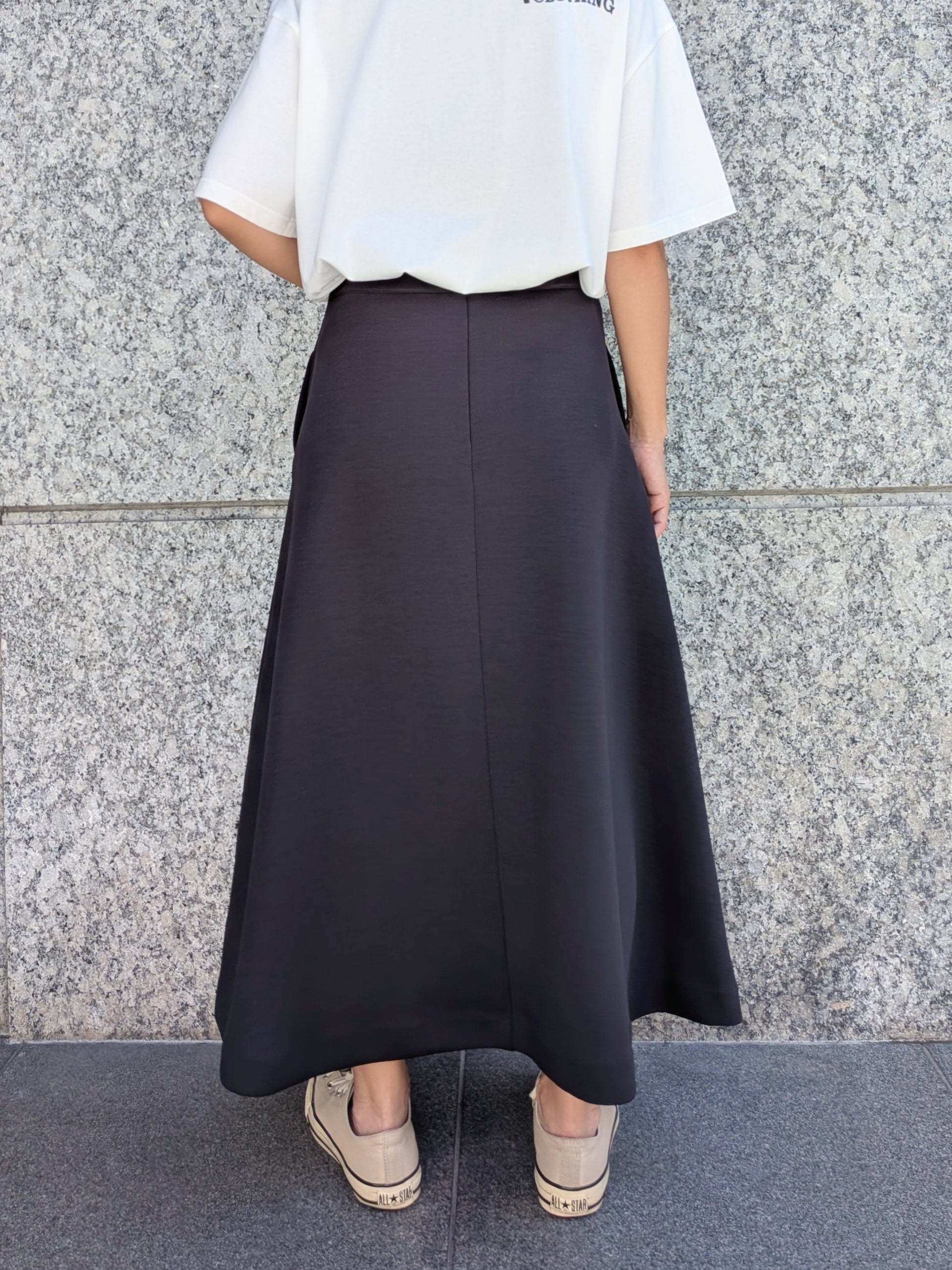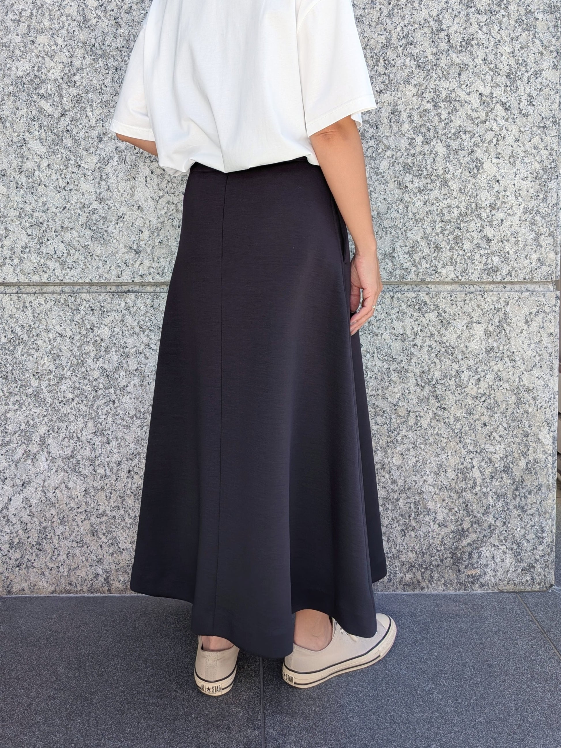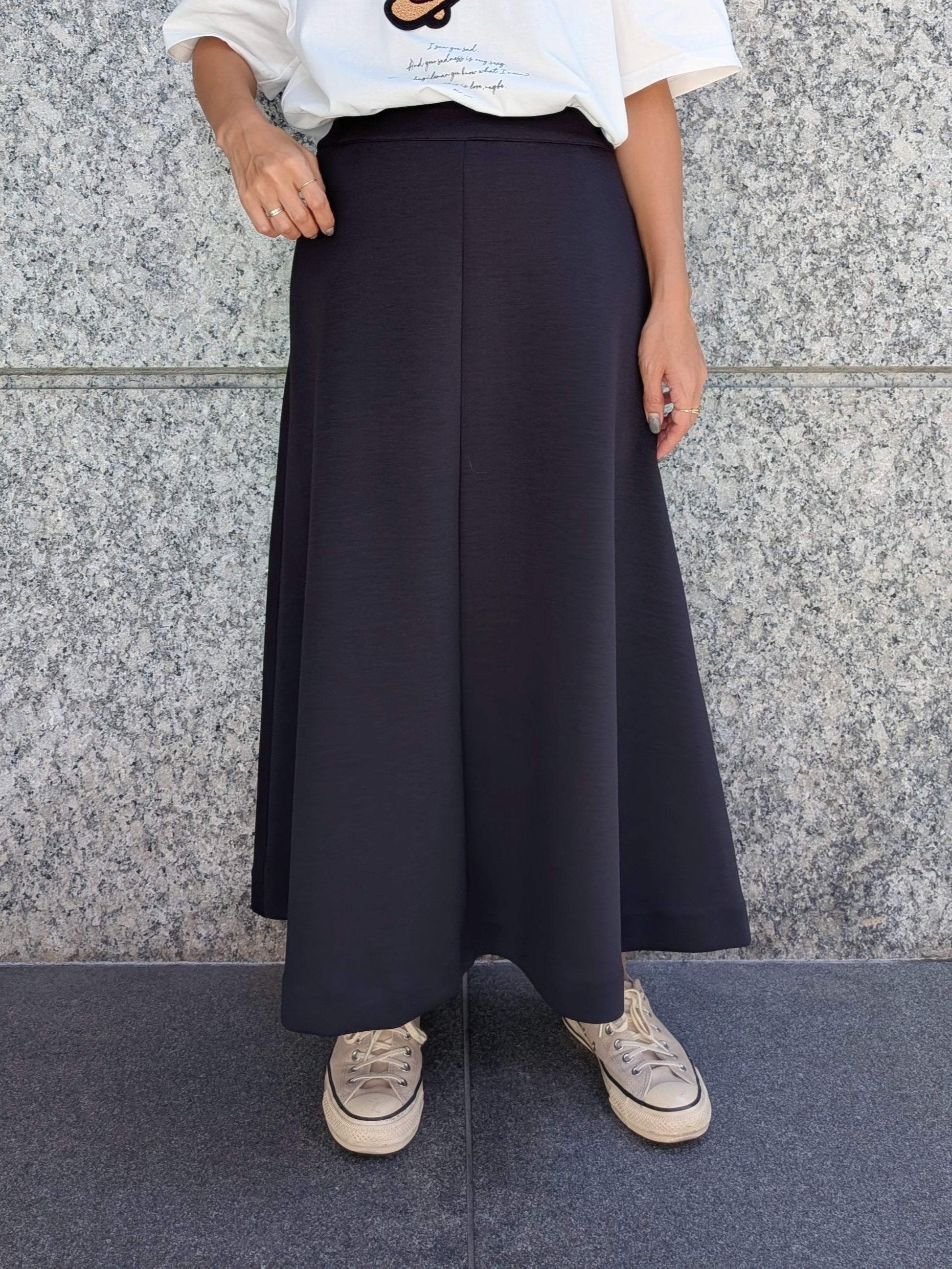 シンプルなトップスを合わせるだけで、スタイリングが華やぐ主役スカートです♫