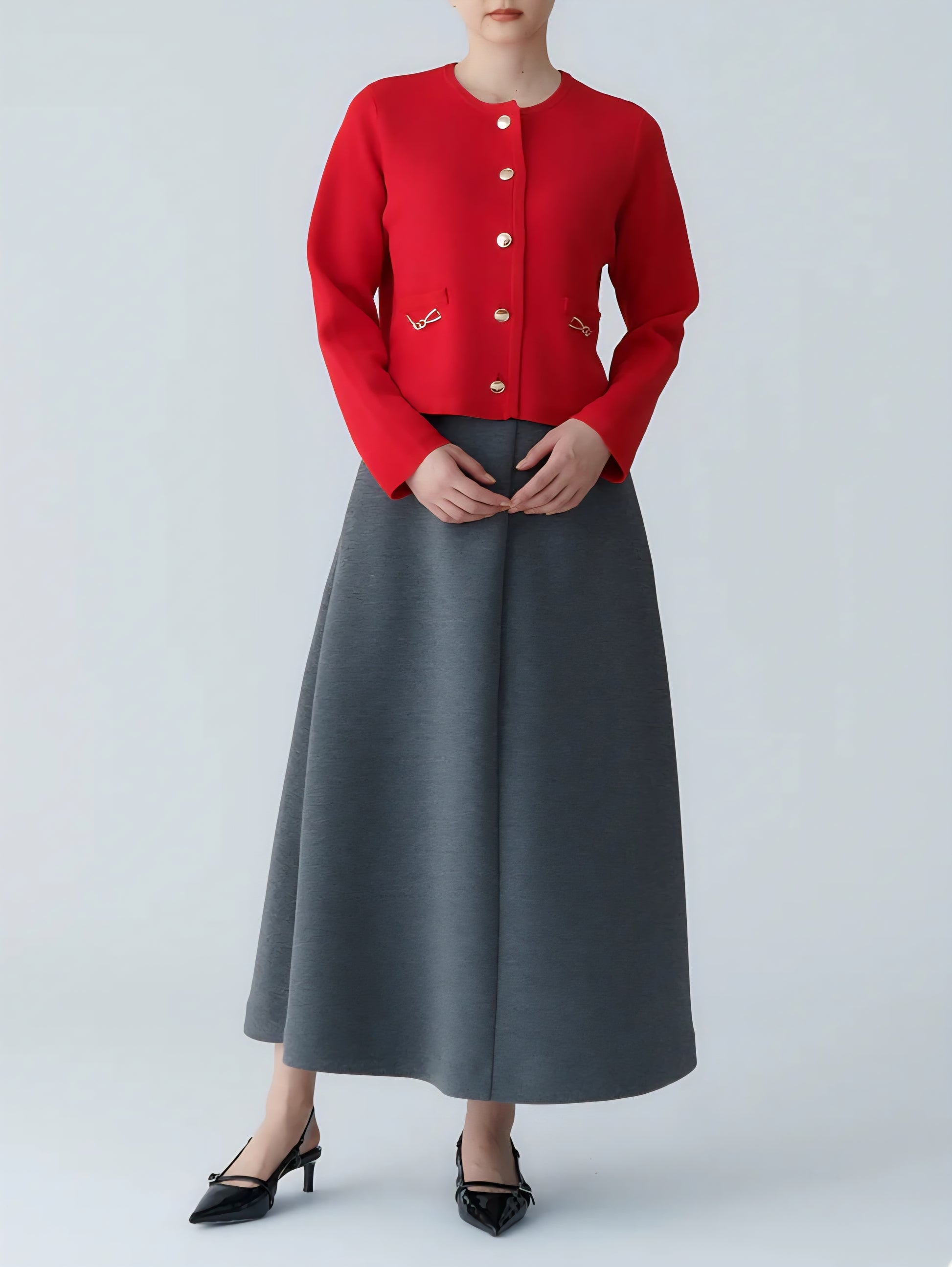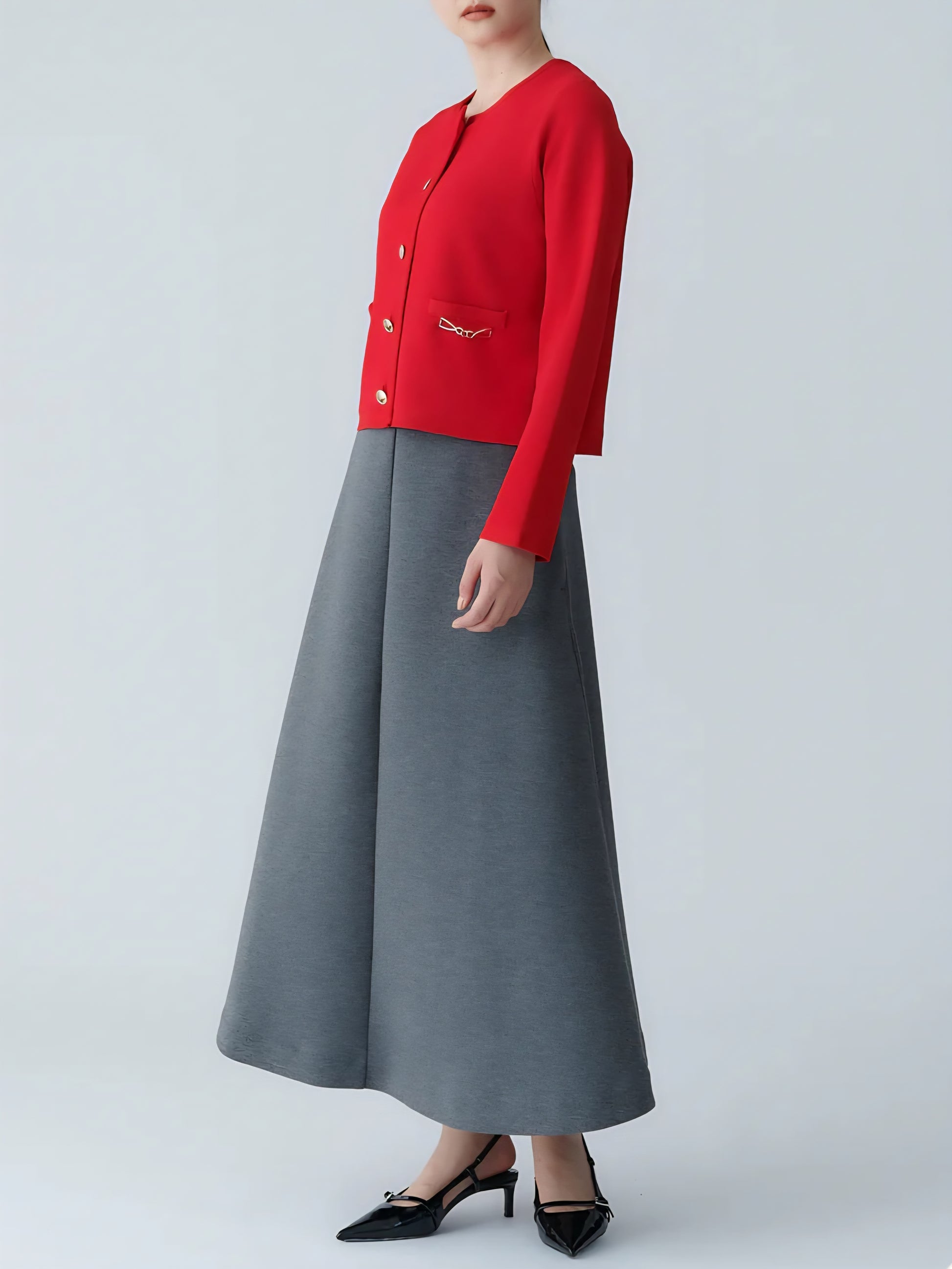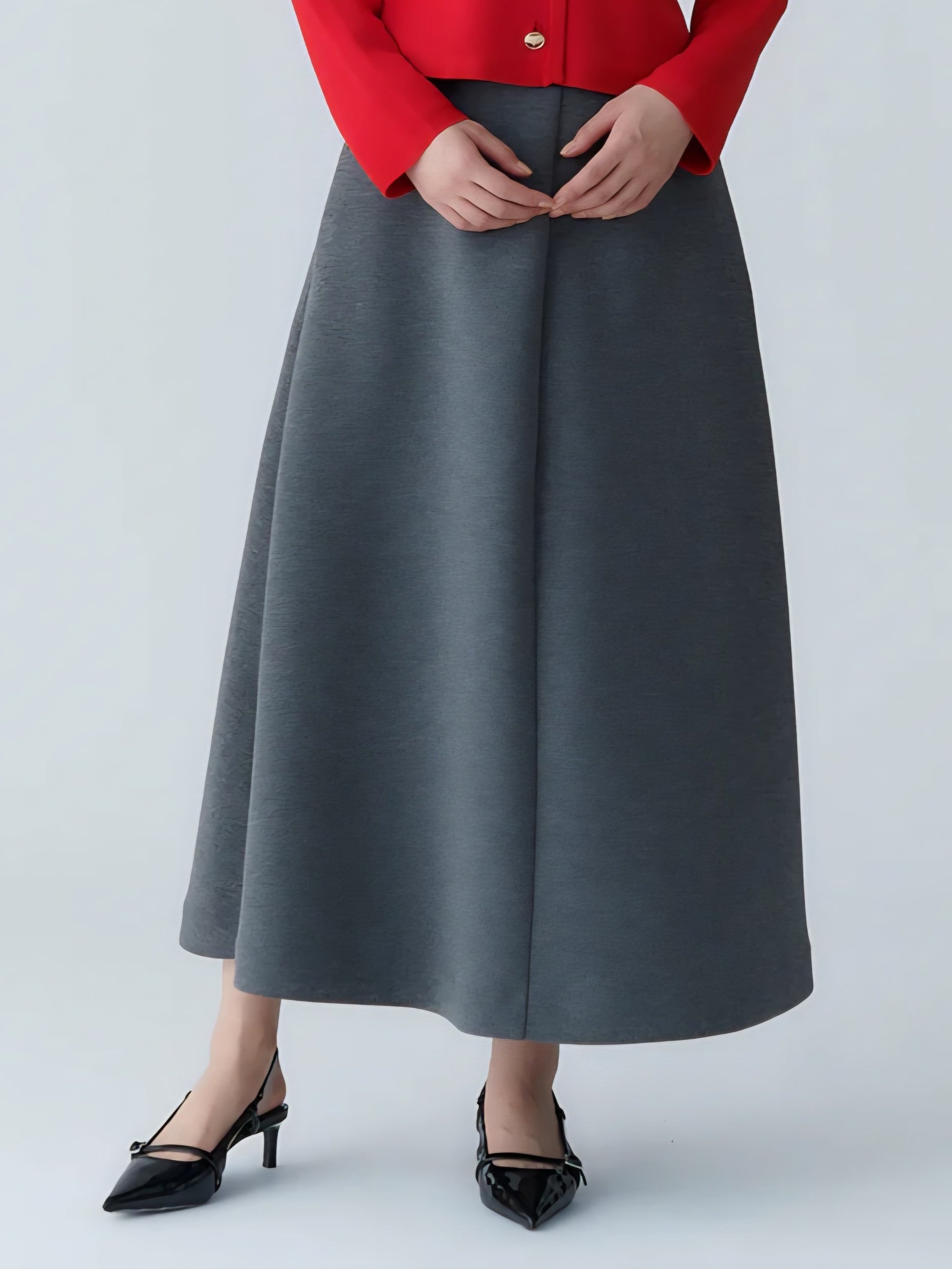 裾にかけて美しく広がるサーキュラーラインが、歩くたびにふんわりと揺れ女性らしい優雅さを演出してくれます!!