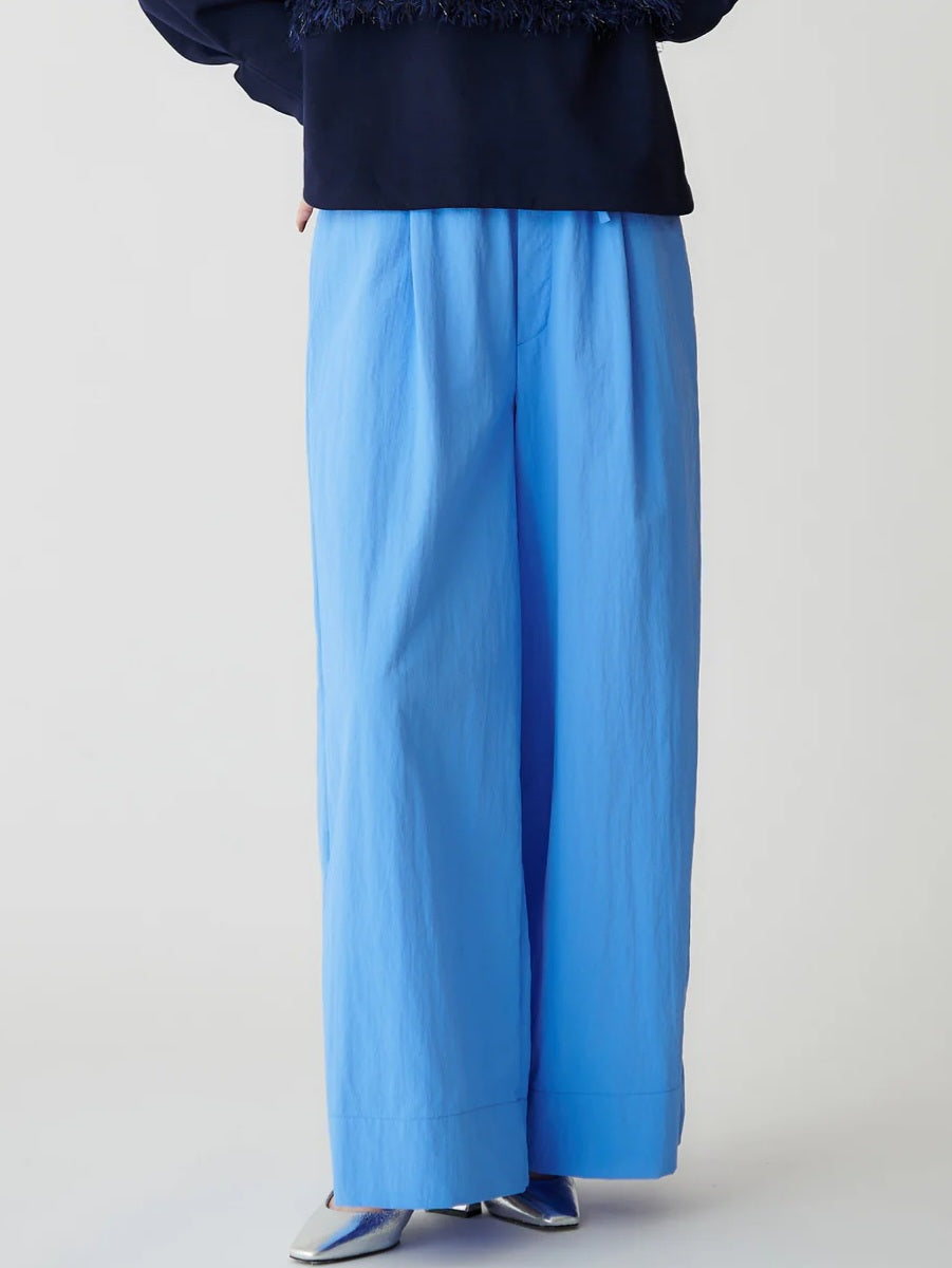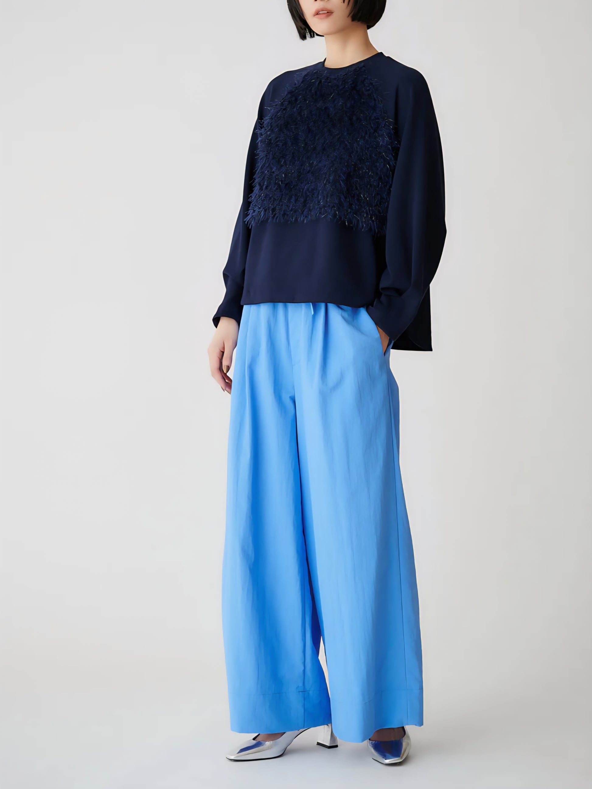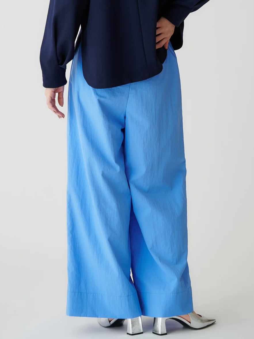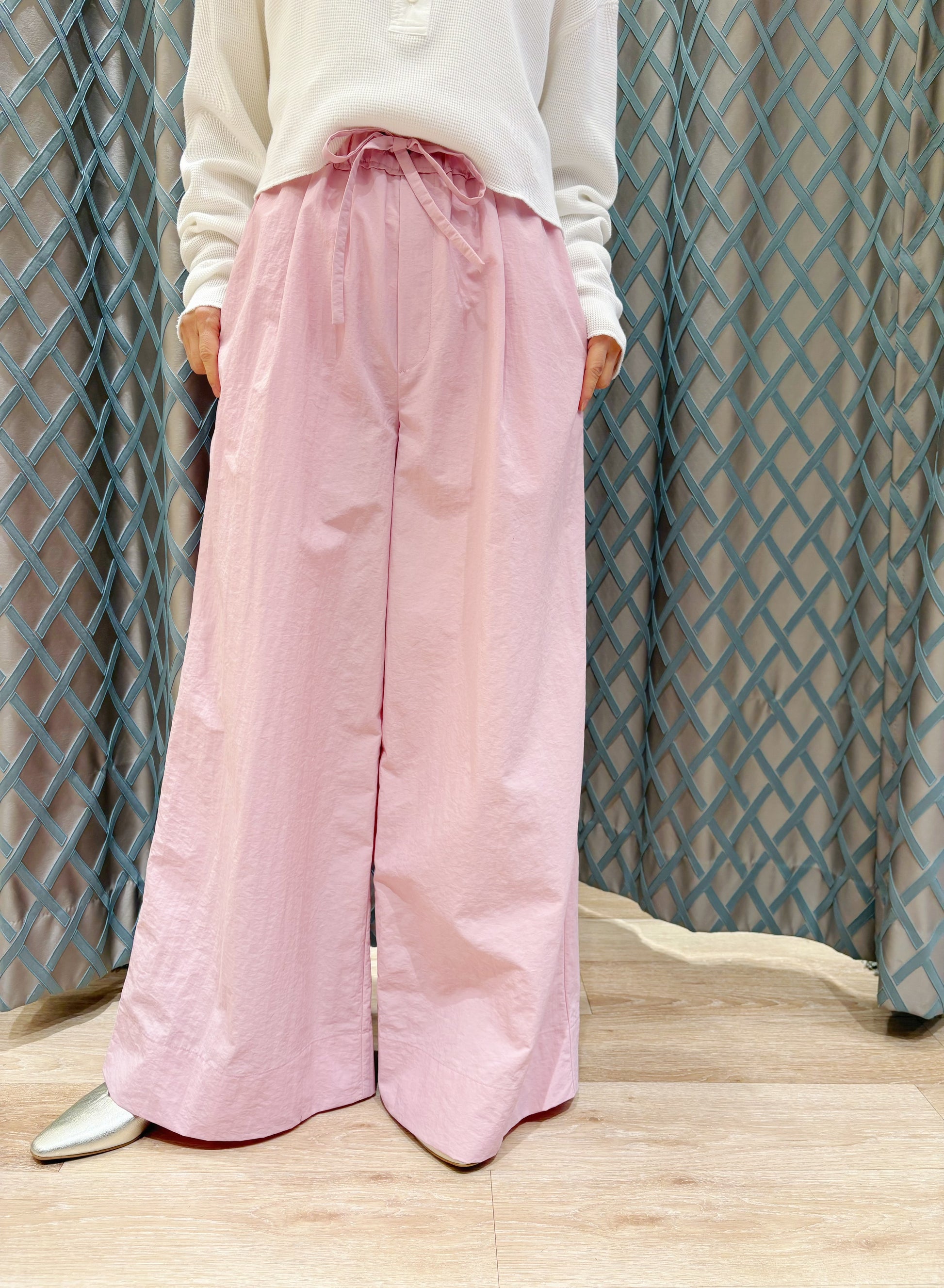 コンパクトなカットソーやブラウスを合わせて、パンツの軽やかな素材感を引き立てたスタイルがおすすめです😊