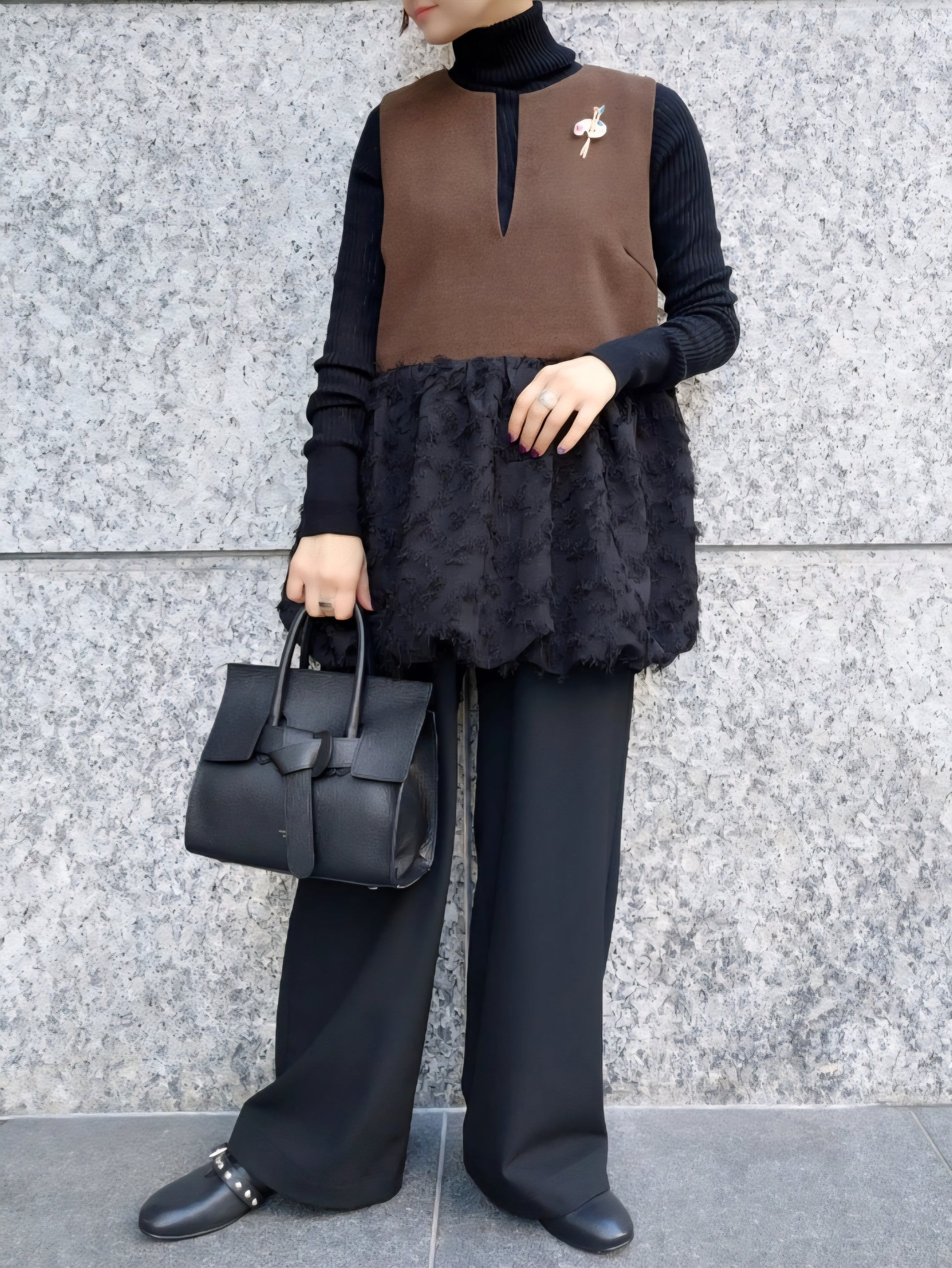BRAHMIN ツイード×カットジャガードバルーンジレ