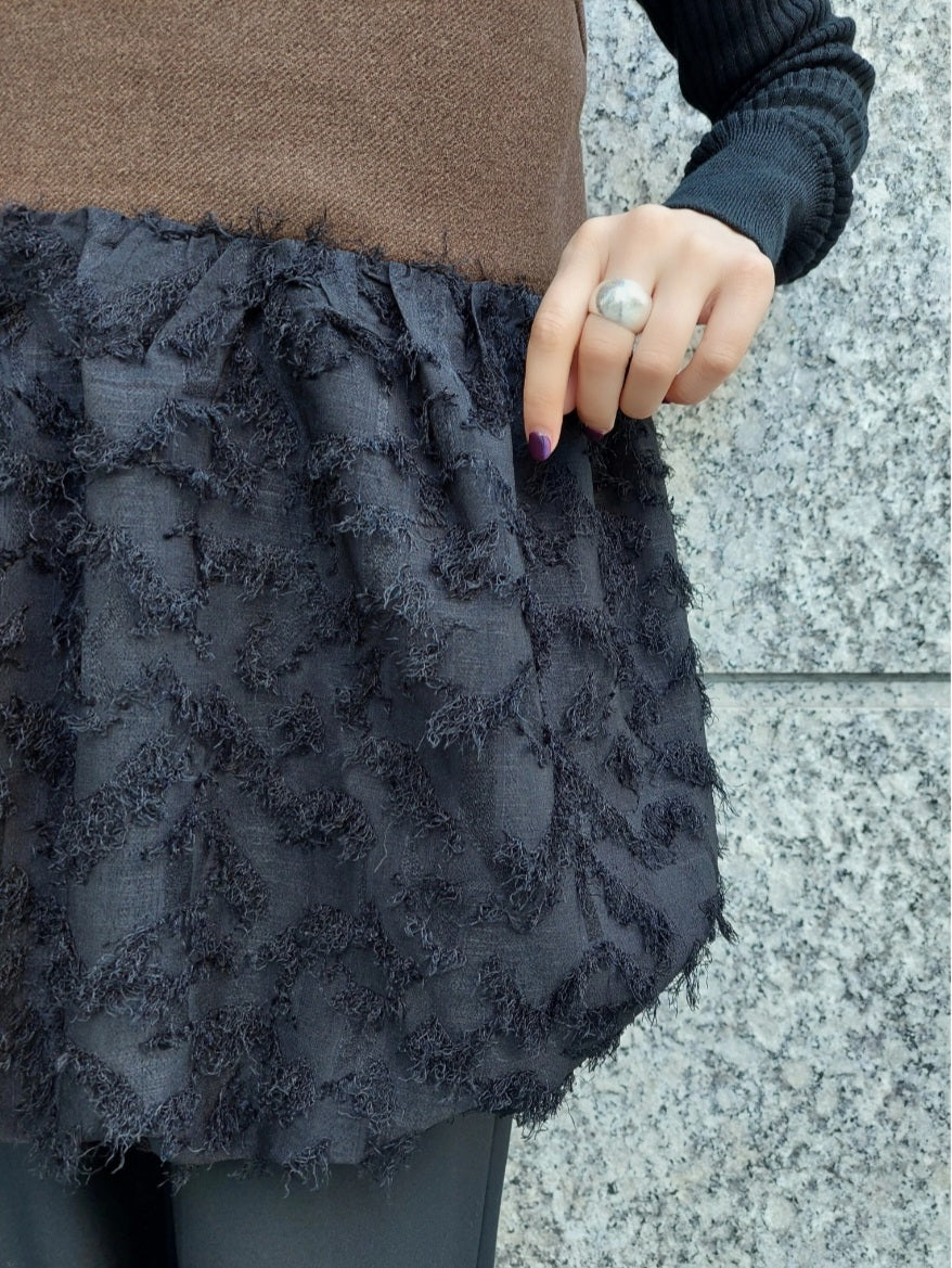 微起毛感のあるポリレーヨンツイードと、繊細なカットジャガード素材を