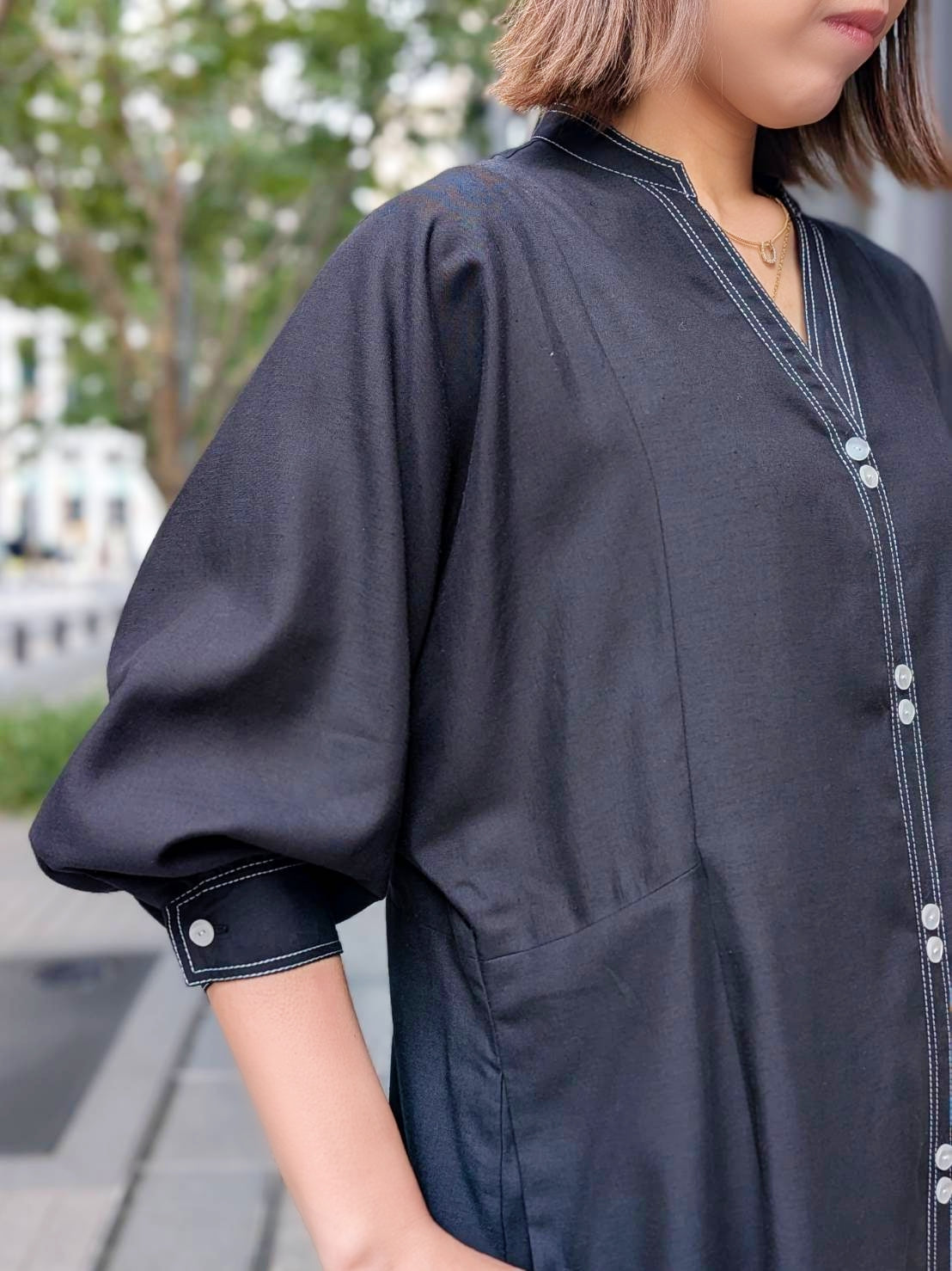 2つ並んだボタンがポイントとなり素敵ですね◎(留めるのは1つです)