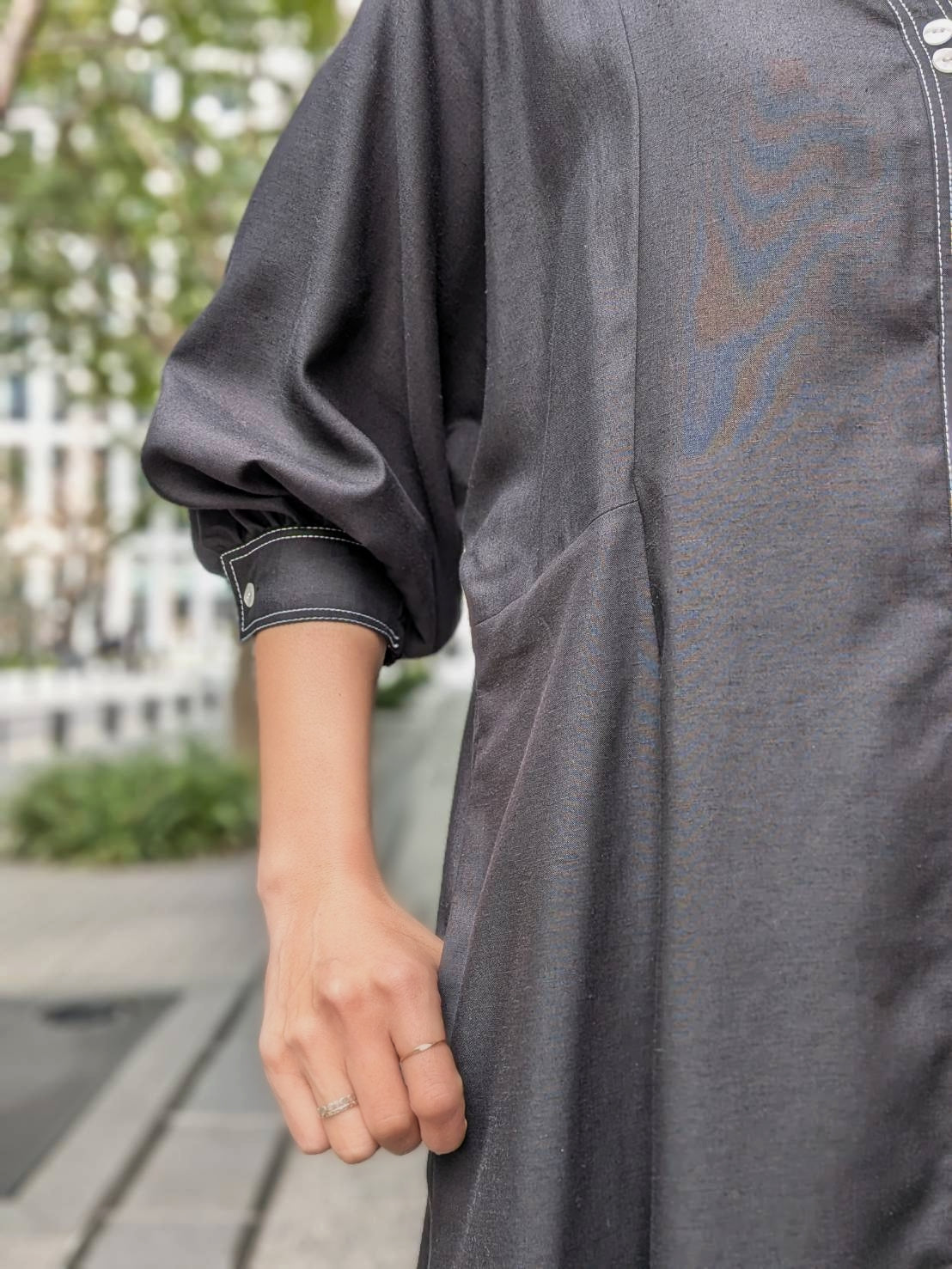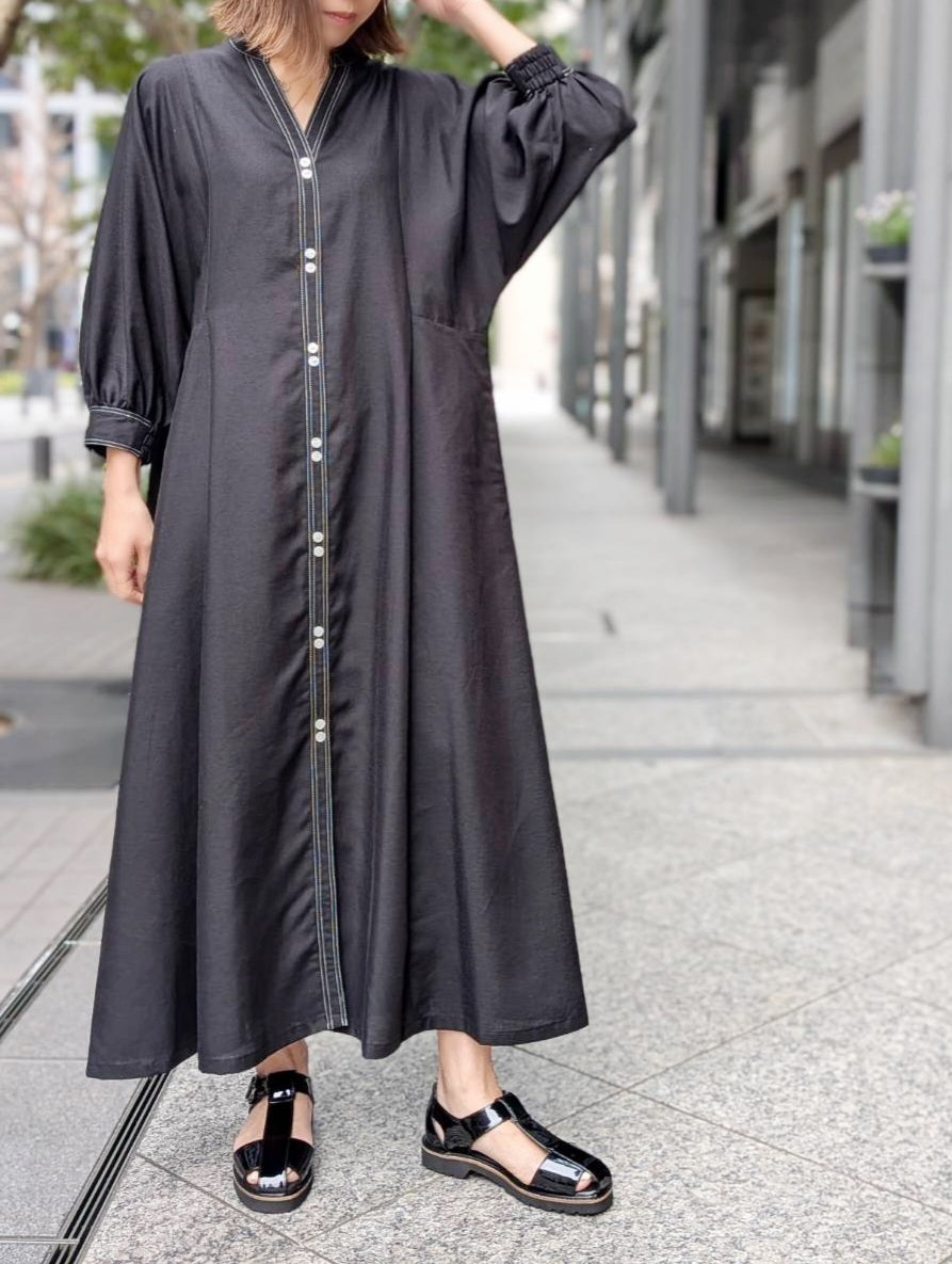気持ち良い素材感と、長い期間着られる薄手の長袖ワンピースは大活躍間違いありません!!