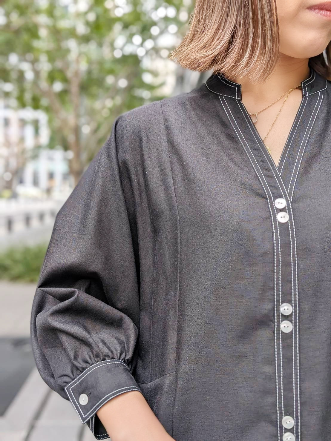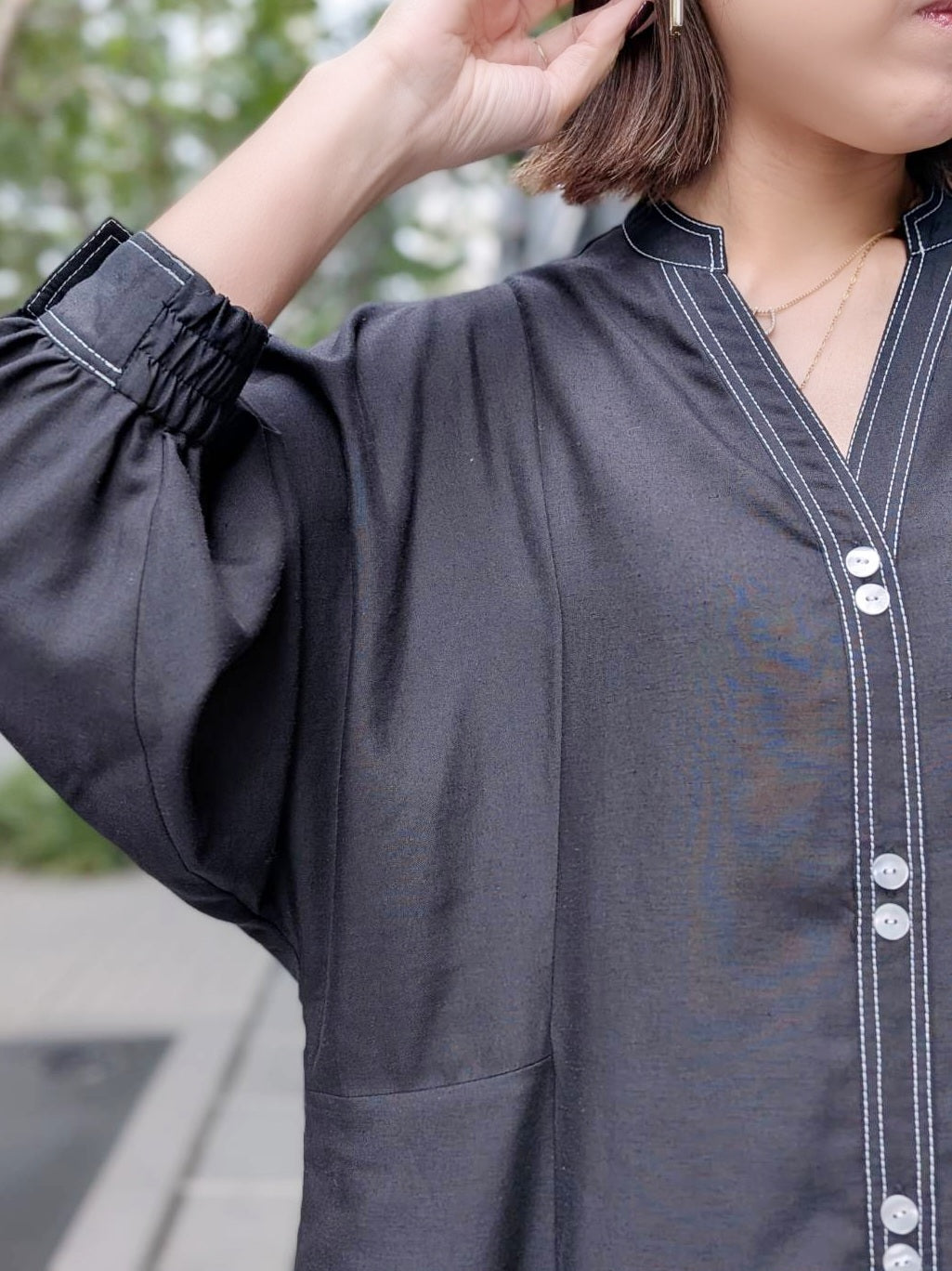 また、前開き仕様で羽織りとしても楽しめる軽やかな1枚です♪