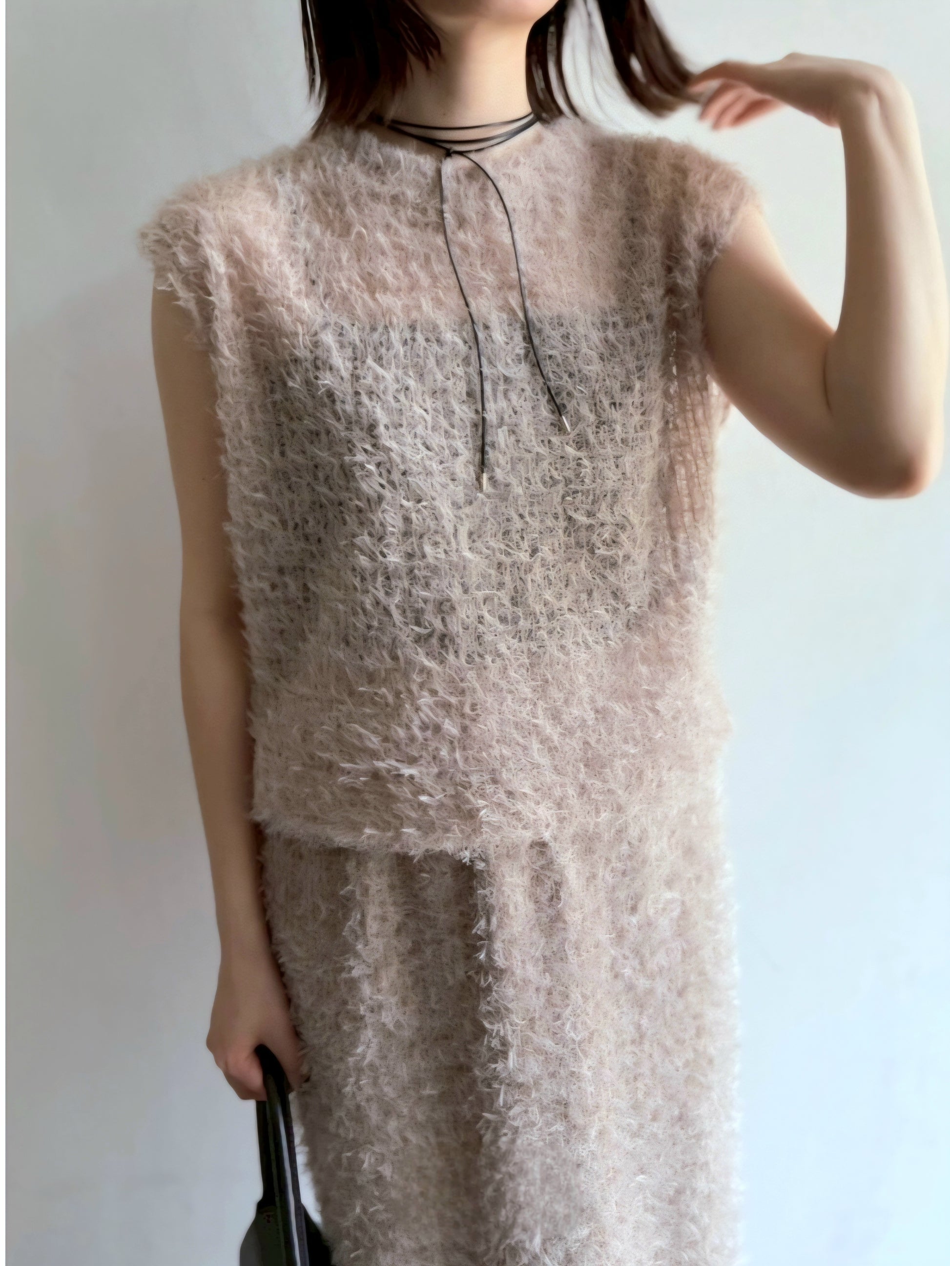 エアリーなチュールに繊細なフェザーを編み込み、軽やかなシアー感が暑い季節にも涼しく自然と秋らしさをプラスしてくれます。