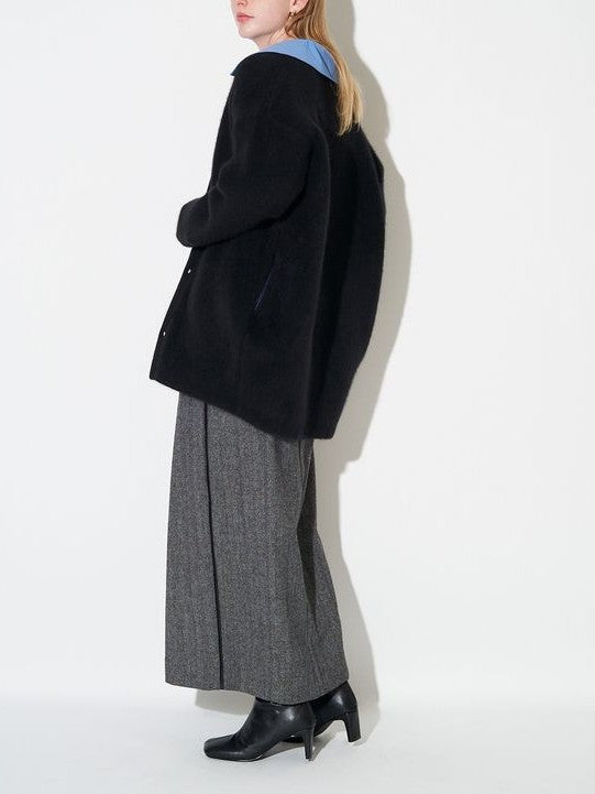 ヒップが隠れる合わせやすい着丈と、コンパクトなコクーンシルエット。
