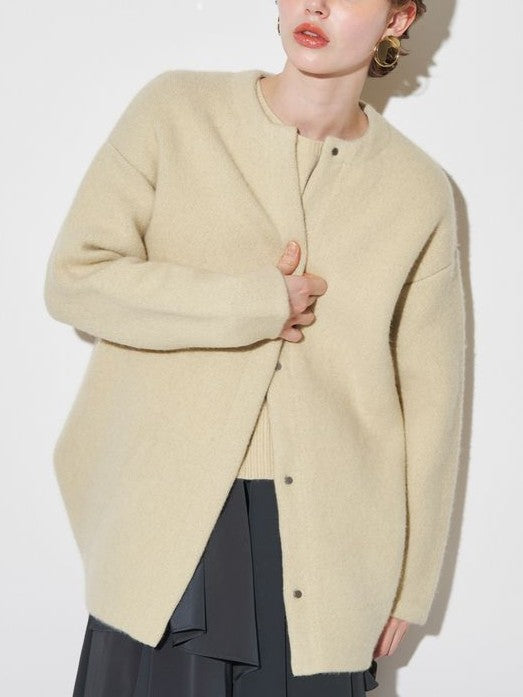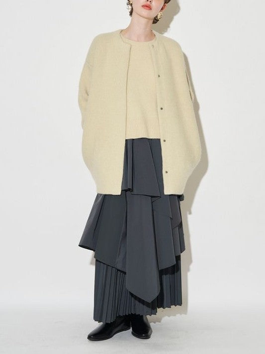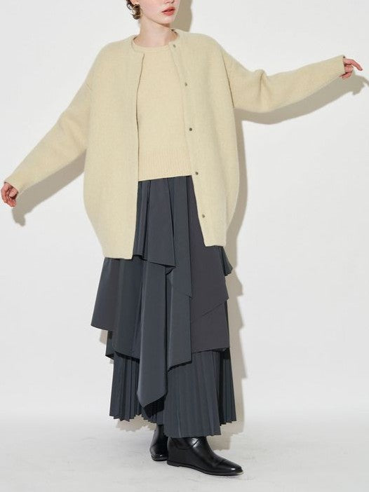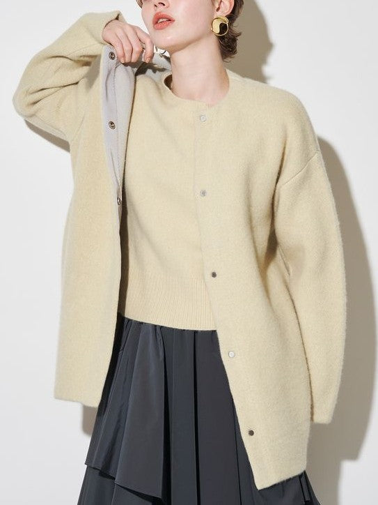毎年大人気のコクーンフォルムが目を惹くアウター見えカーディガン。