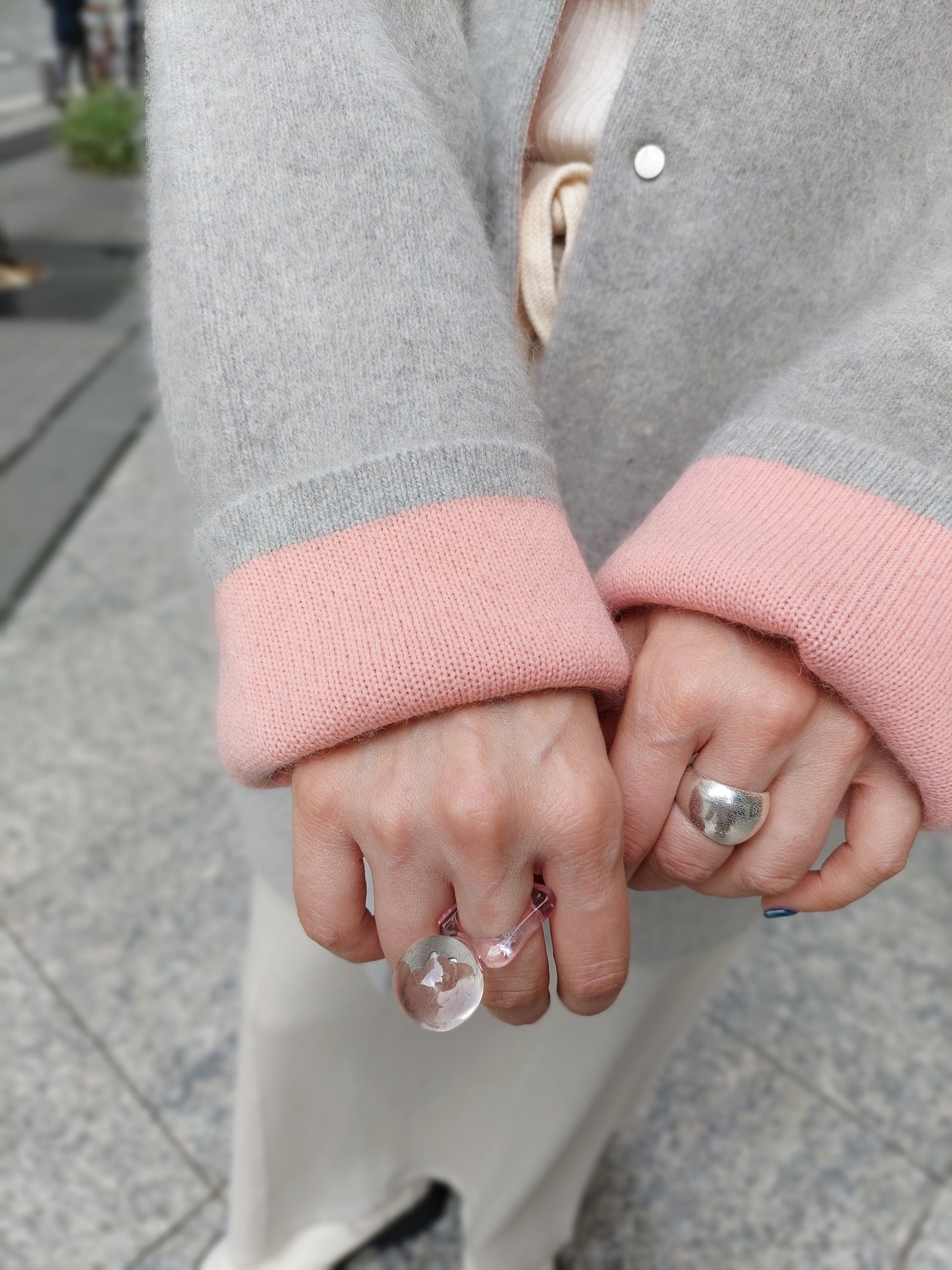 毎年変わる配色は、袖まくりや前ボタンを開けたときのコントラストがとても可愛く、アクセントに。