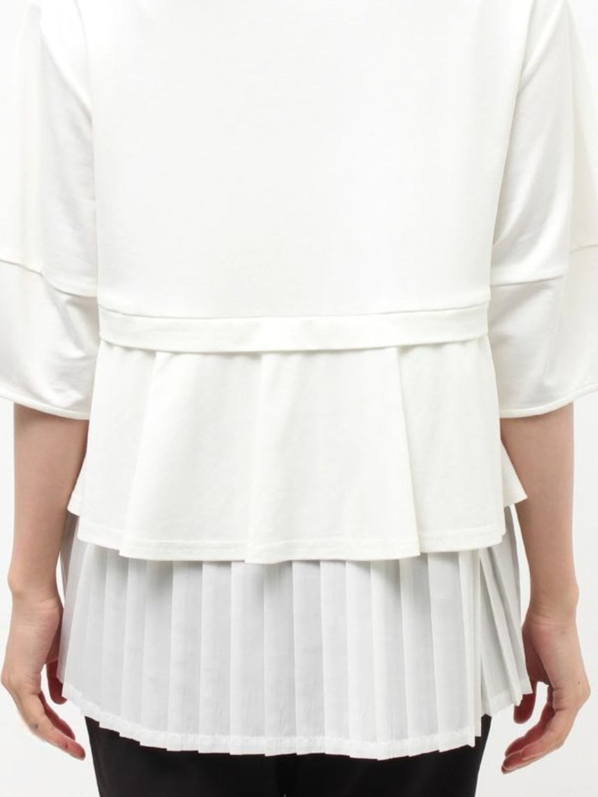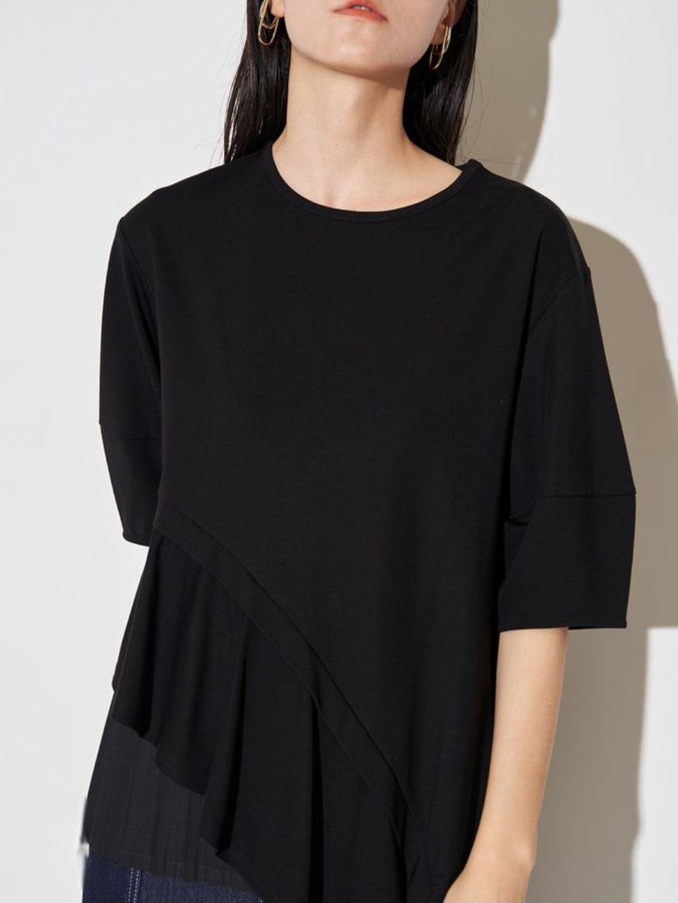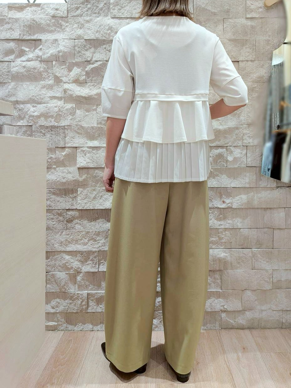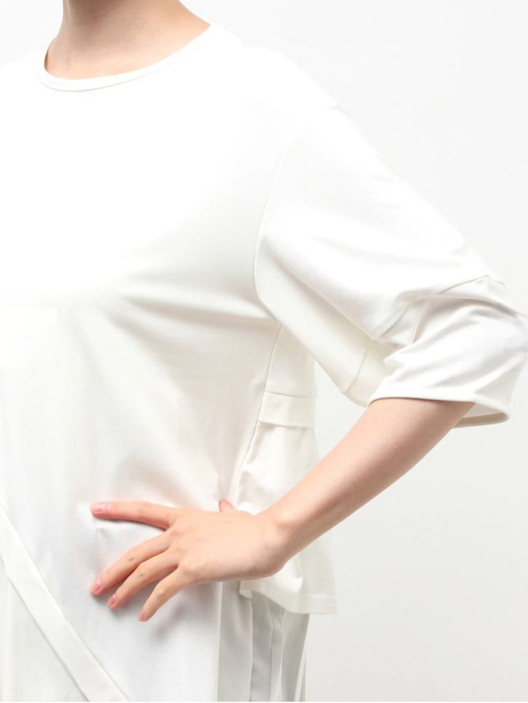 裾にかけて斜めに切り替えを入れフレアとプリーツをドッキングした一枚で着映えするデザインTシャツ♡