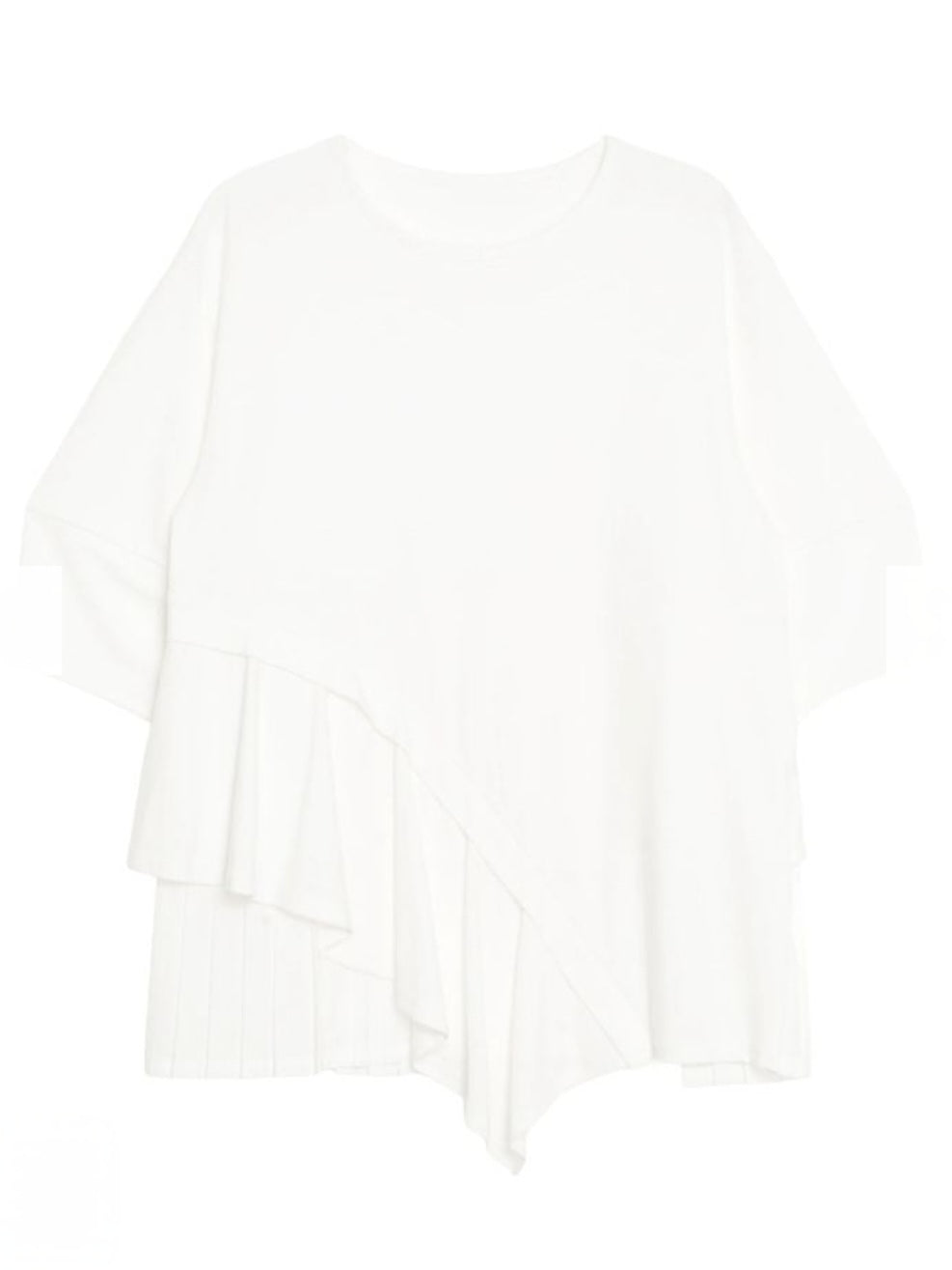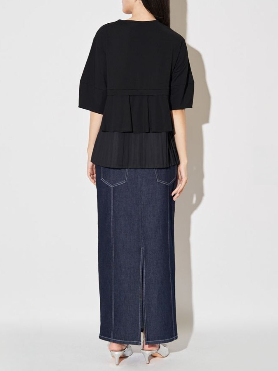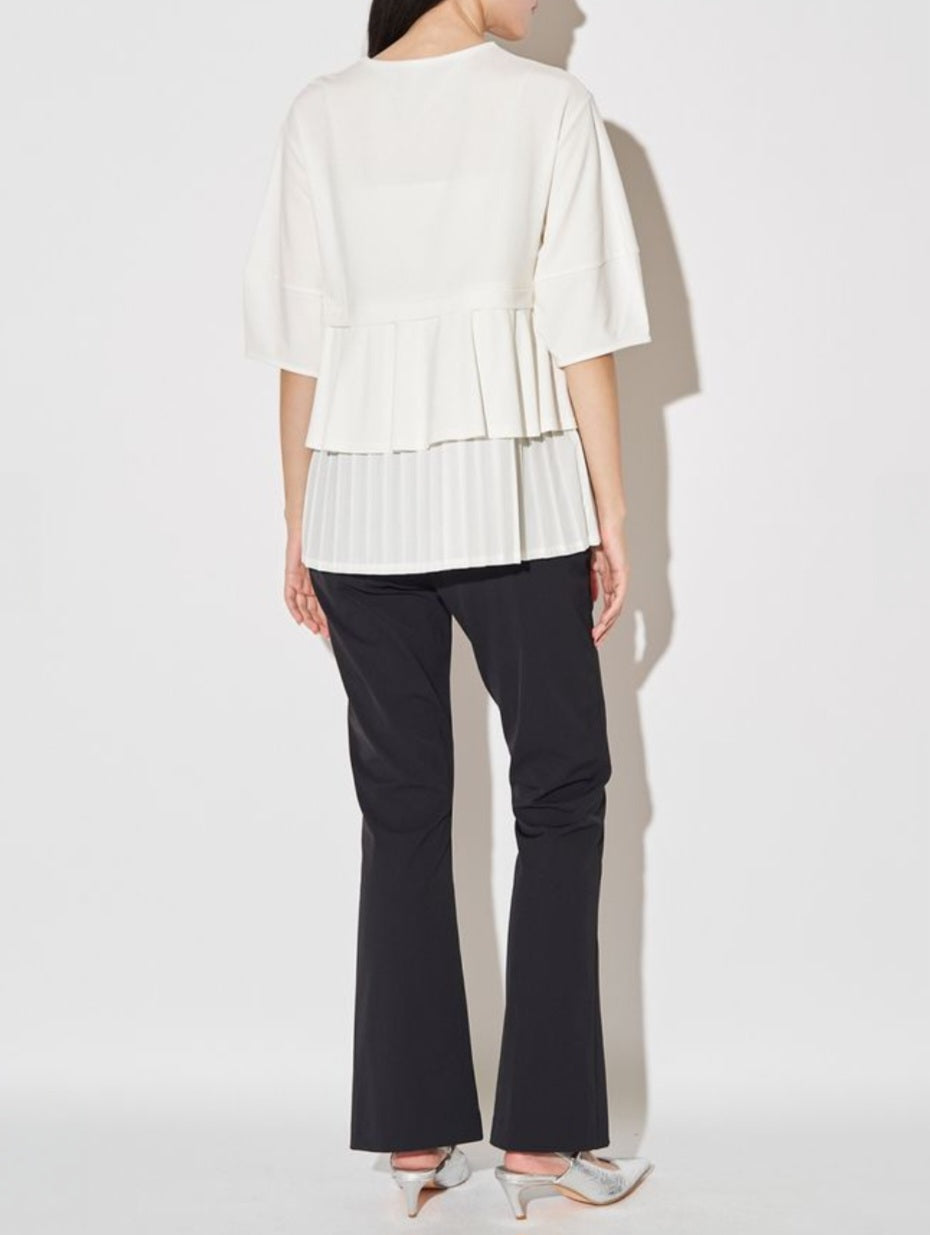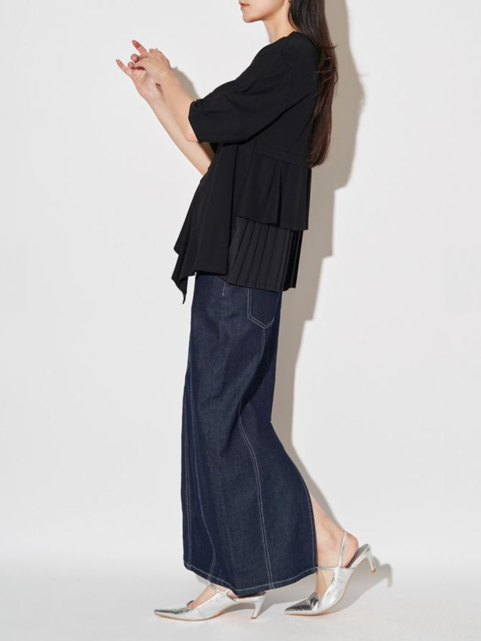 裾にかけて斜めに切り替えを入れフレアとプリーツをドッキングした一枚で着映えするデザインTシャツ♡