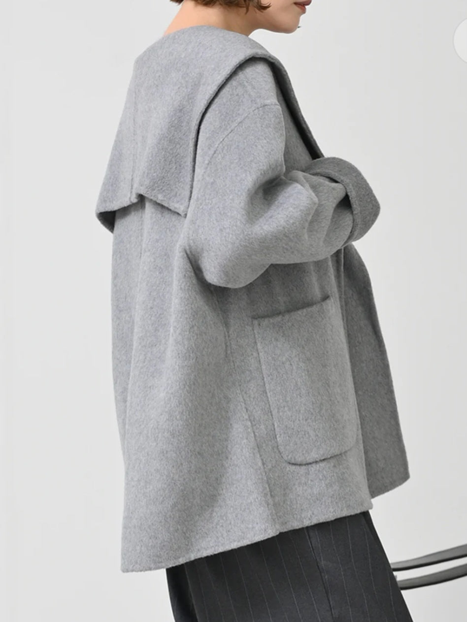セーラーカラーの様な大きなお衿が印象的なウールコート♡