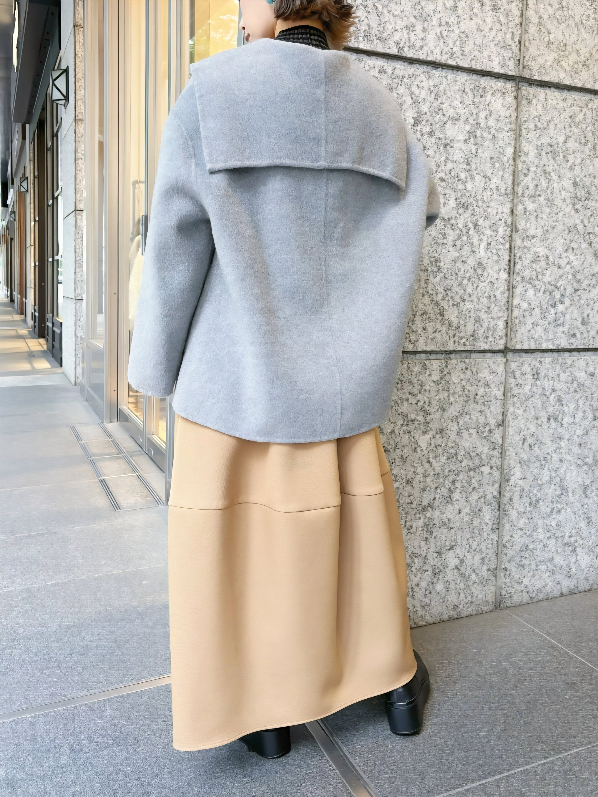 セーラーカラー風の背面デザインが印象的なコートは、フロントはシンプルなボタンで大人っぽく仕上げました☆