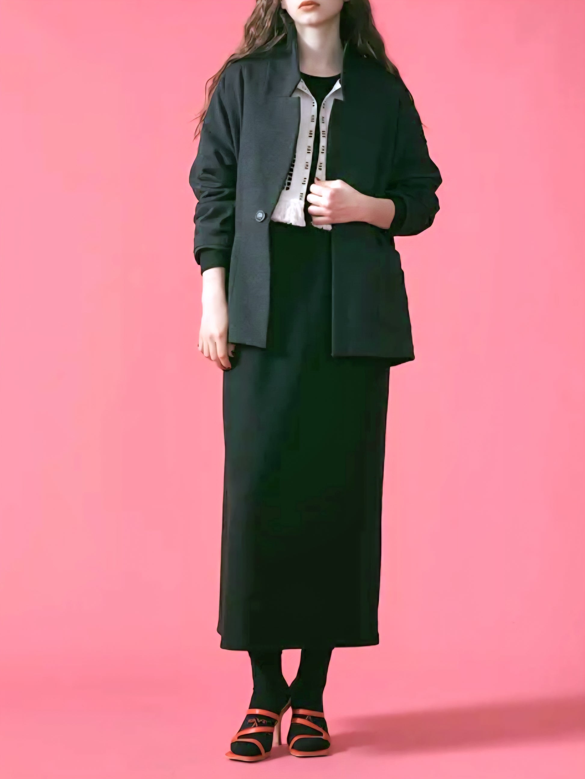 裾に施されたタックが自然とコクーンなシルエットに仕上げてくれる嬉しいデザインです。