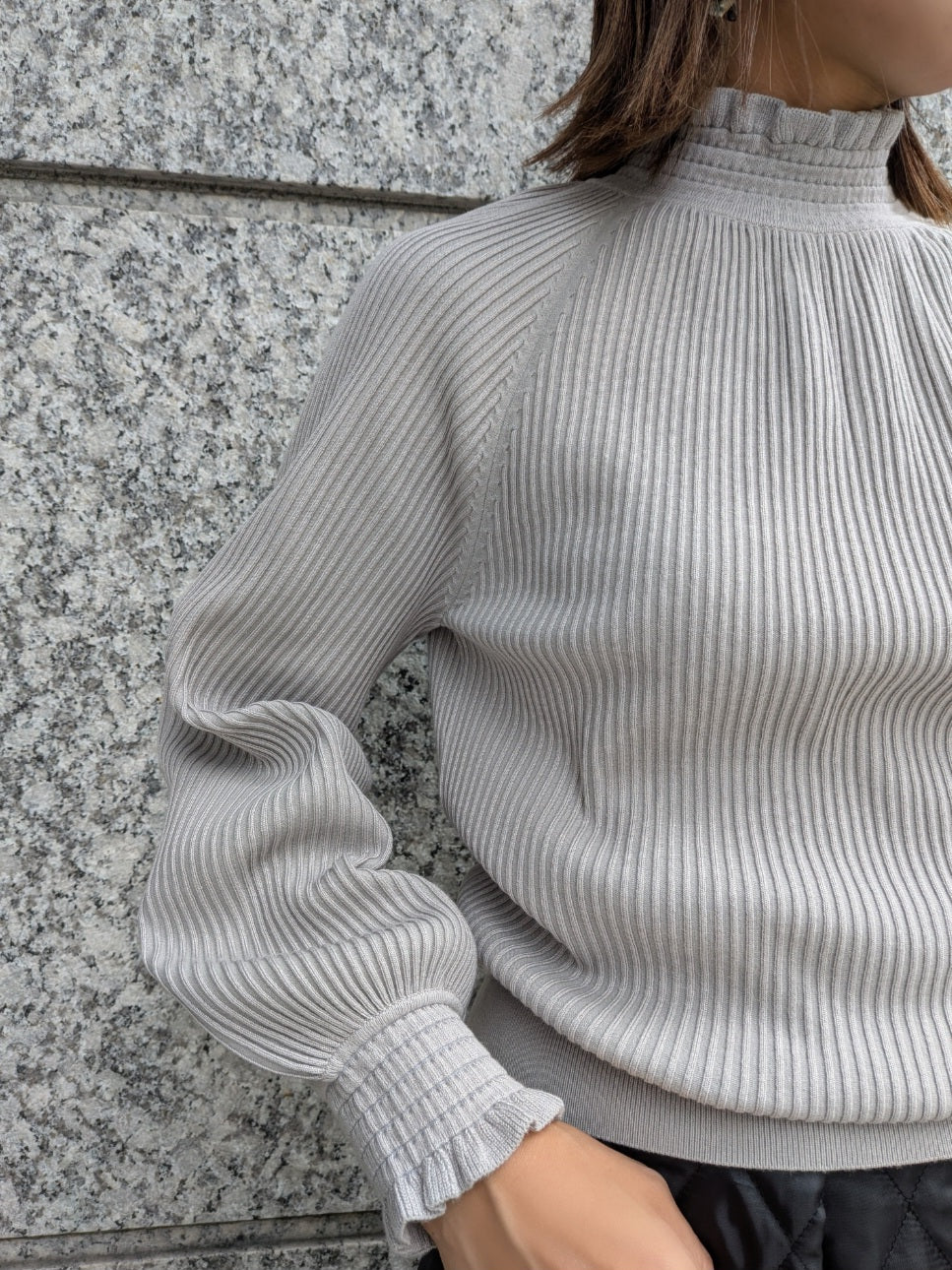 ラグランのボリュームスリーブは、肩周りを華奢にみせてくれる嬉しい仕様です。