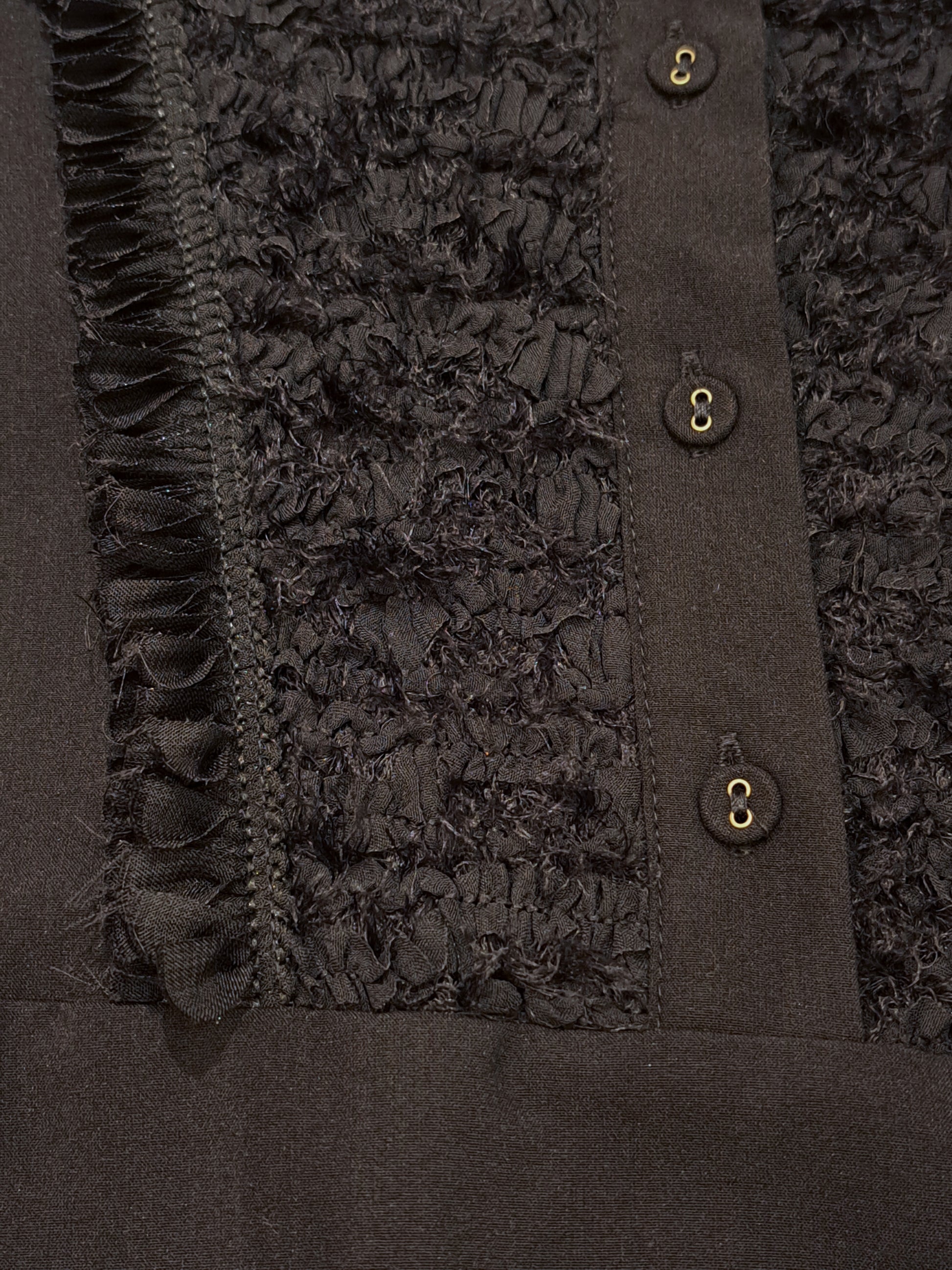 胸元にはファンシーツイードをドッキングし、またツイード端にフリンジブレードをあしらった華やかで高級感のあるワンピース♡