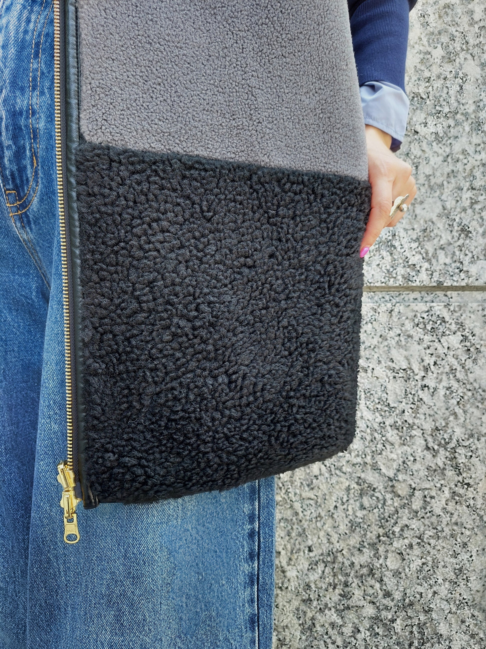【素材】ボア:ポリエステル65% アクリル20% 毛15% 布帛部分:ポリエステル100% 別布:合成皮革