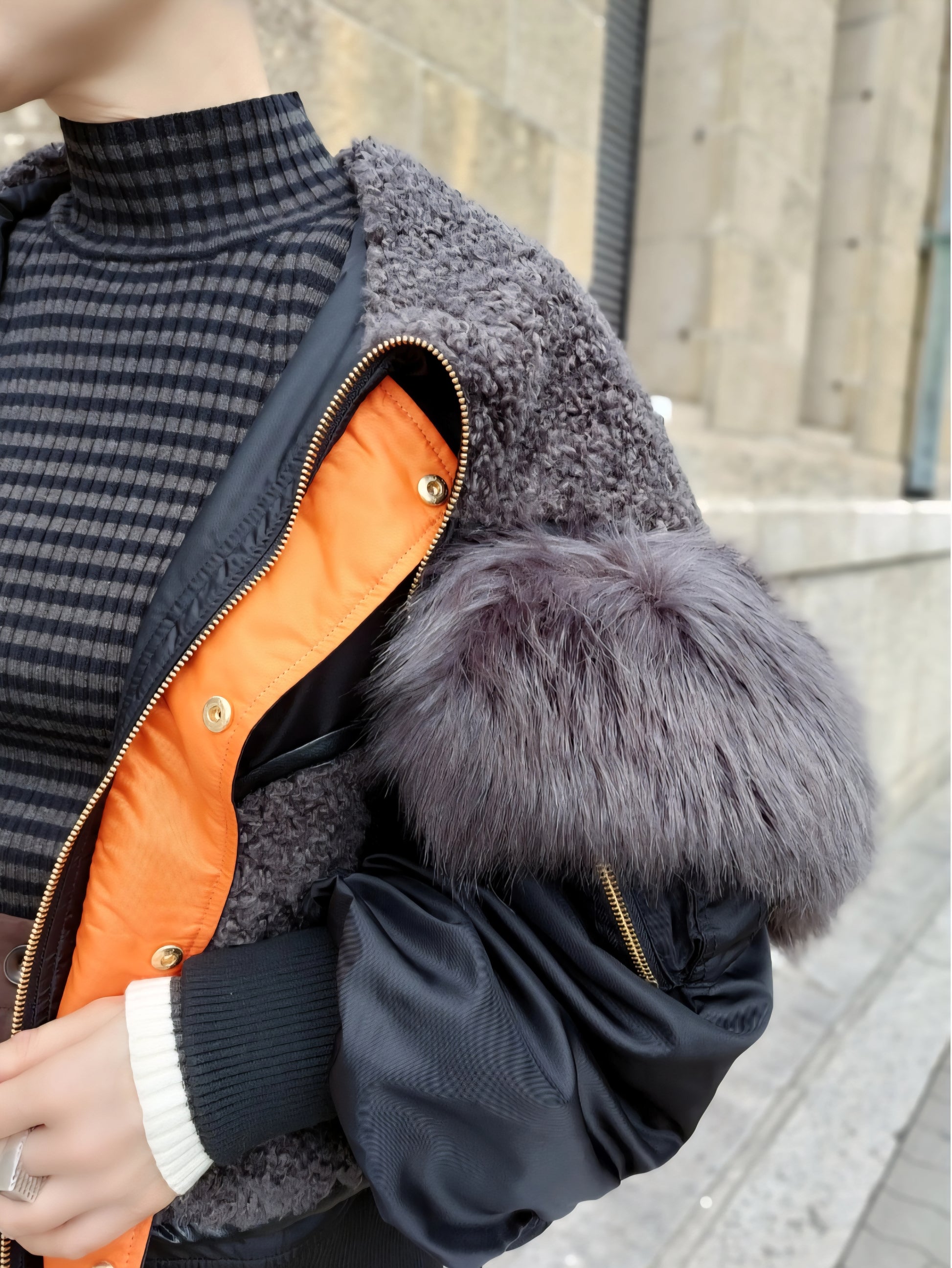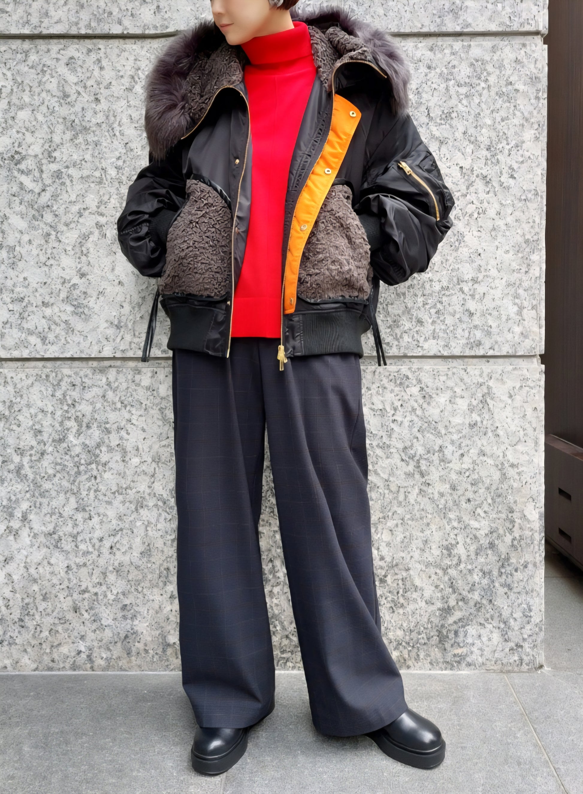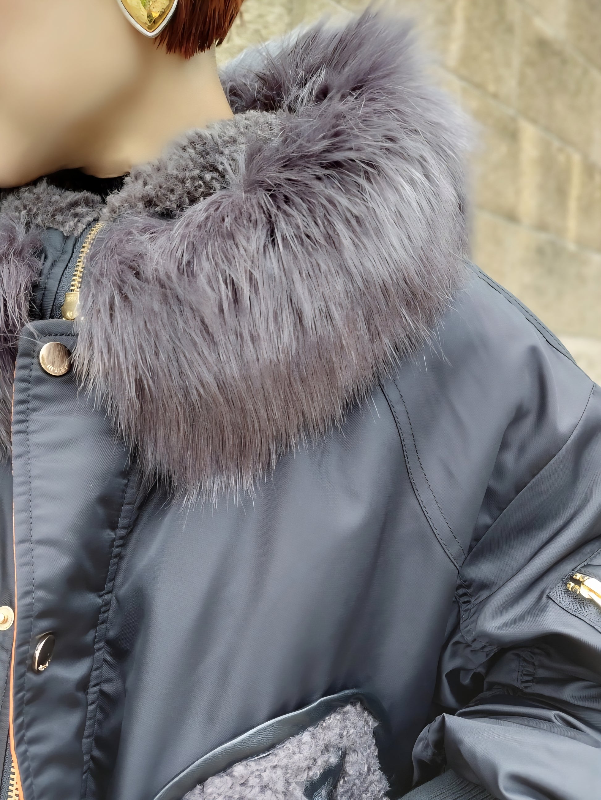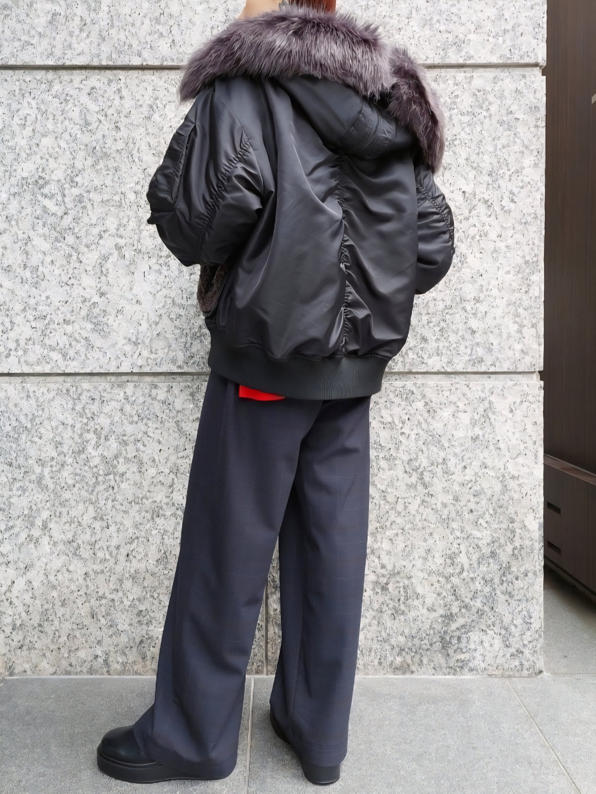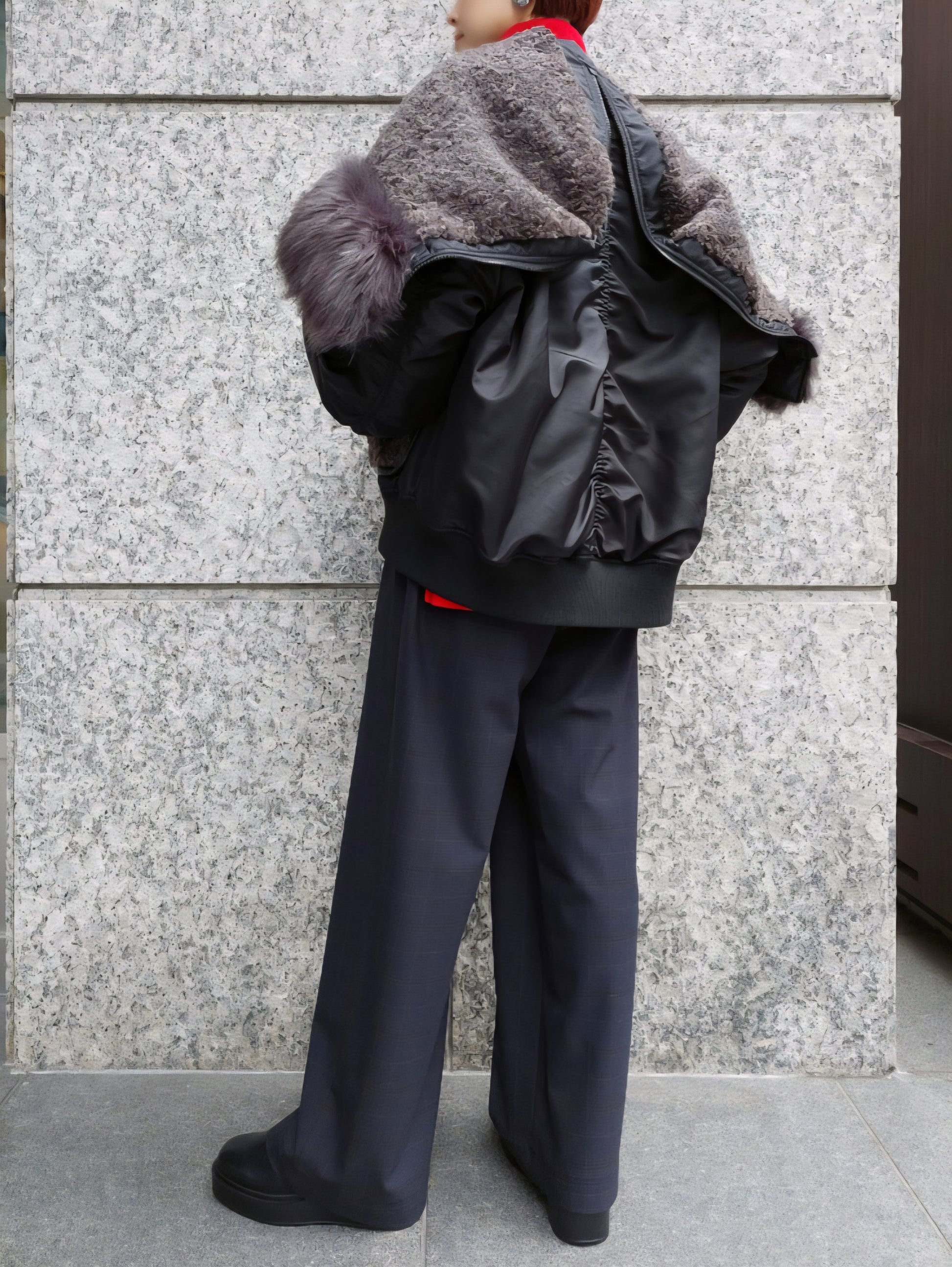 エコファーを贅沢に異素材使いしたブルゾンはフーディがファスナーで大きさ調節可能!!!
