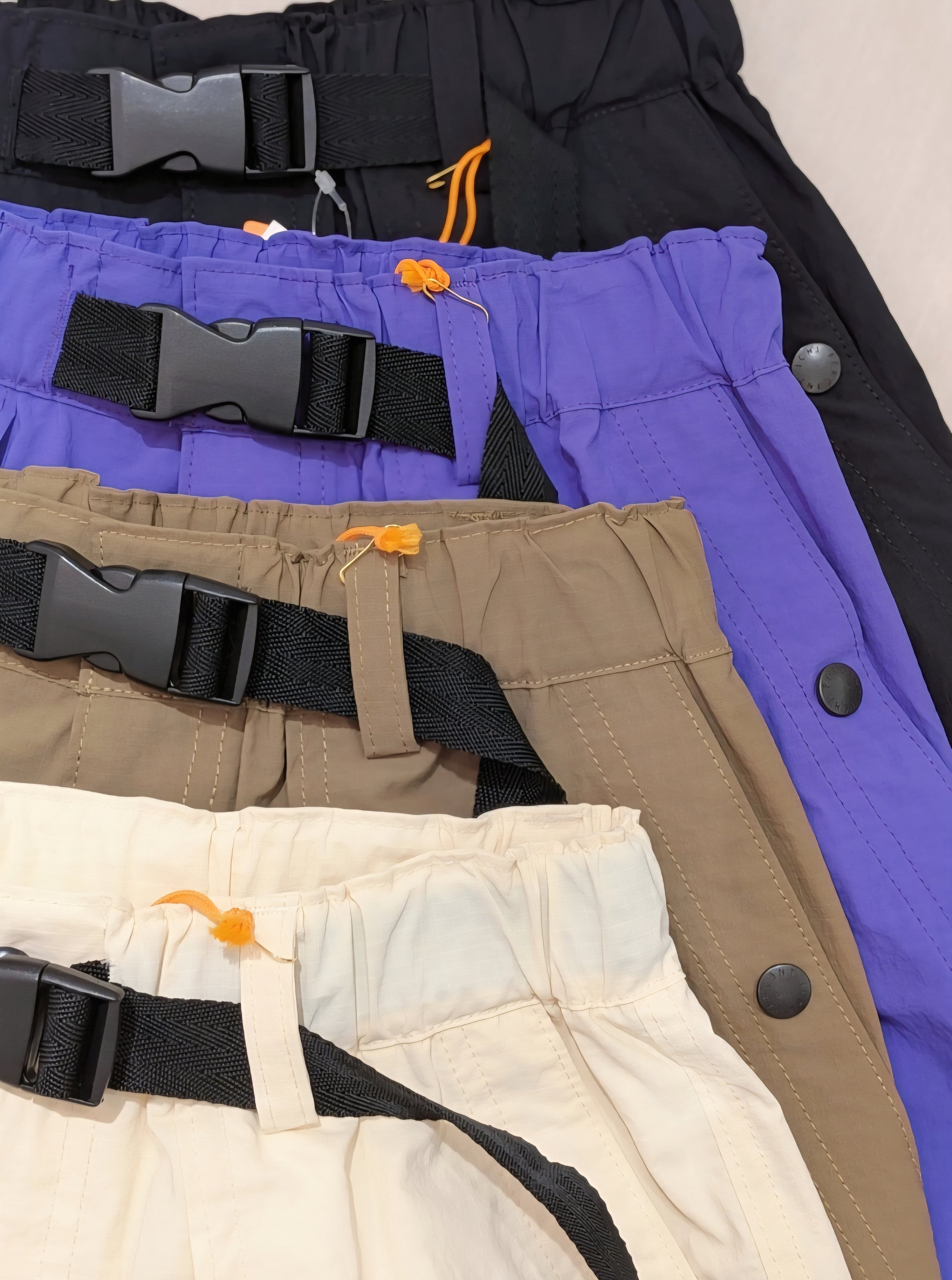 色合いも豊富で、ウエストはベルトで調整可能です!!