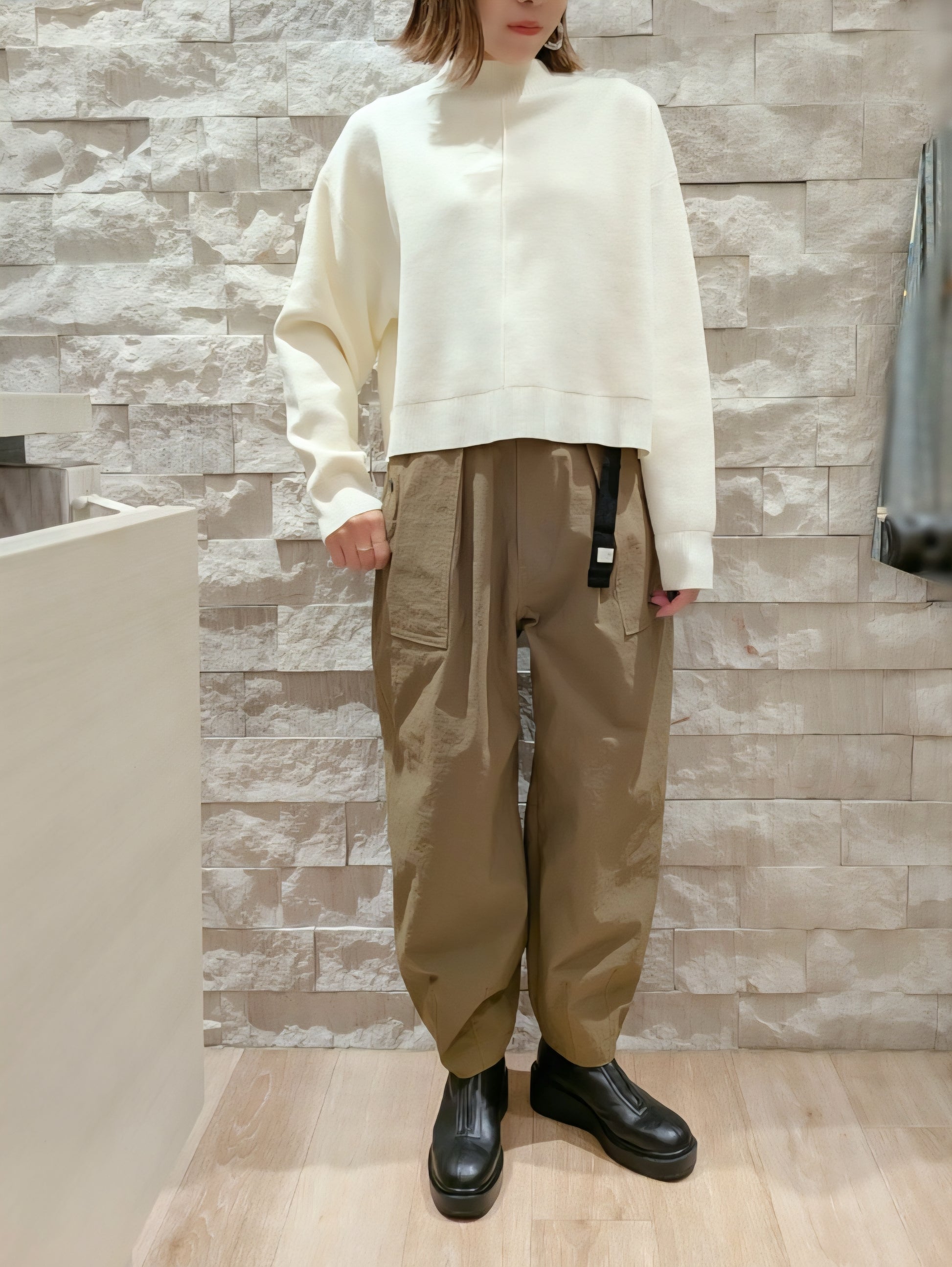 シルエットも控えめなカーブパンツですので、コーディネートもどんなモノとも相性抜群◎