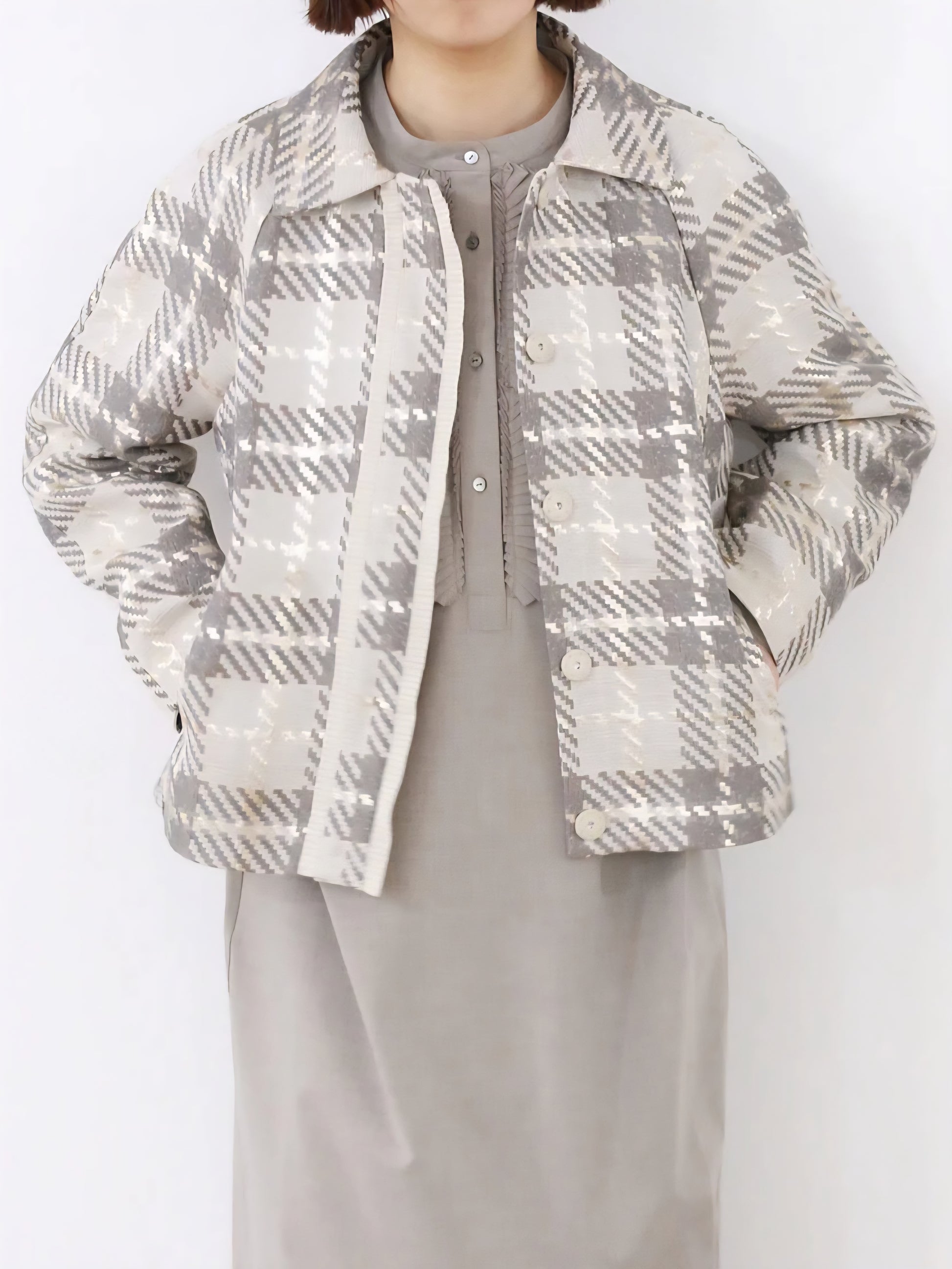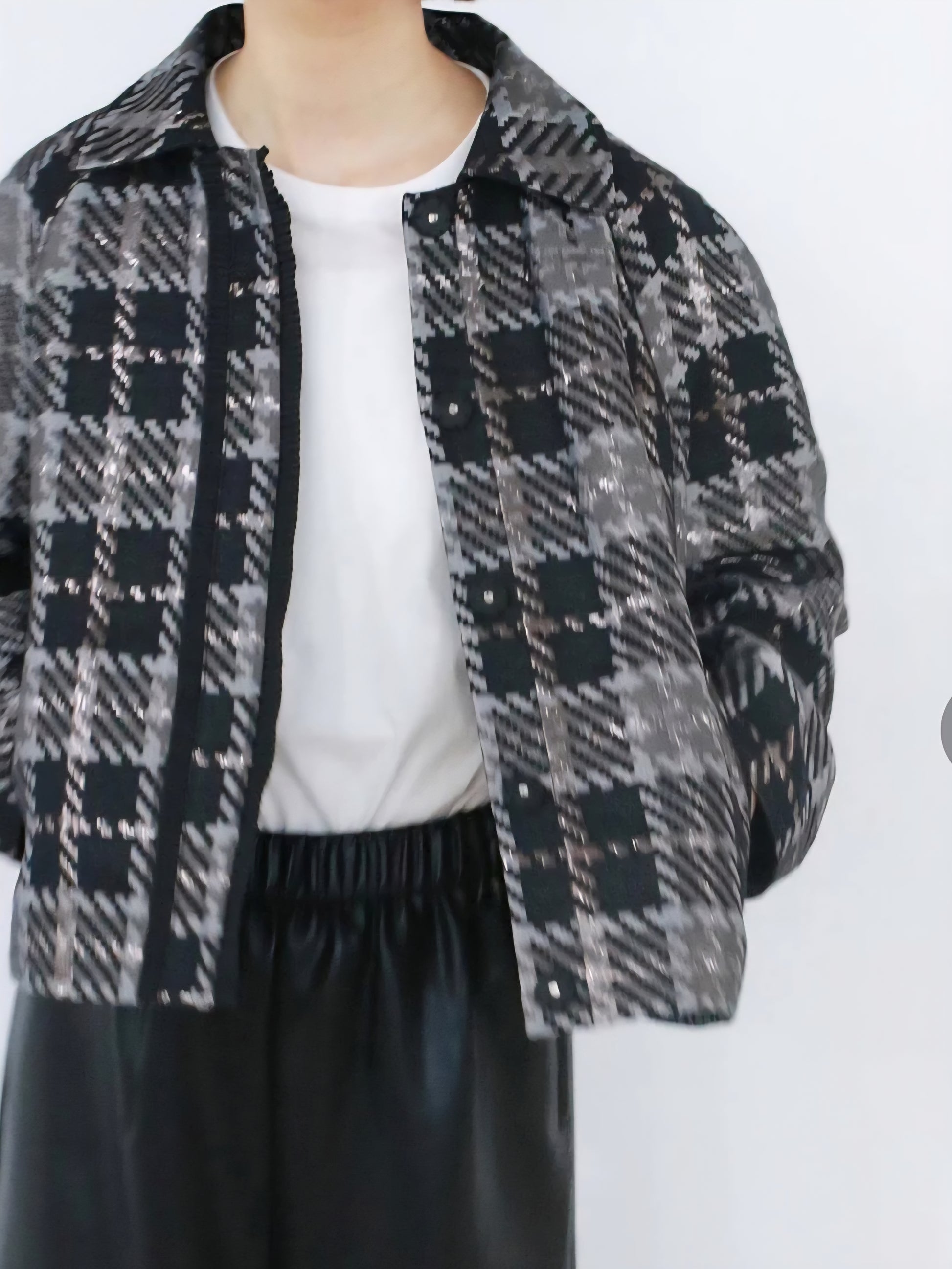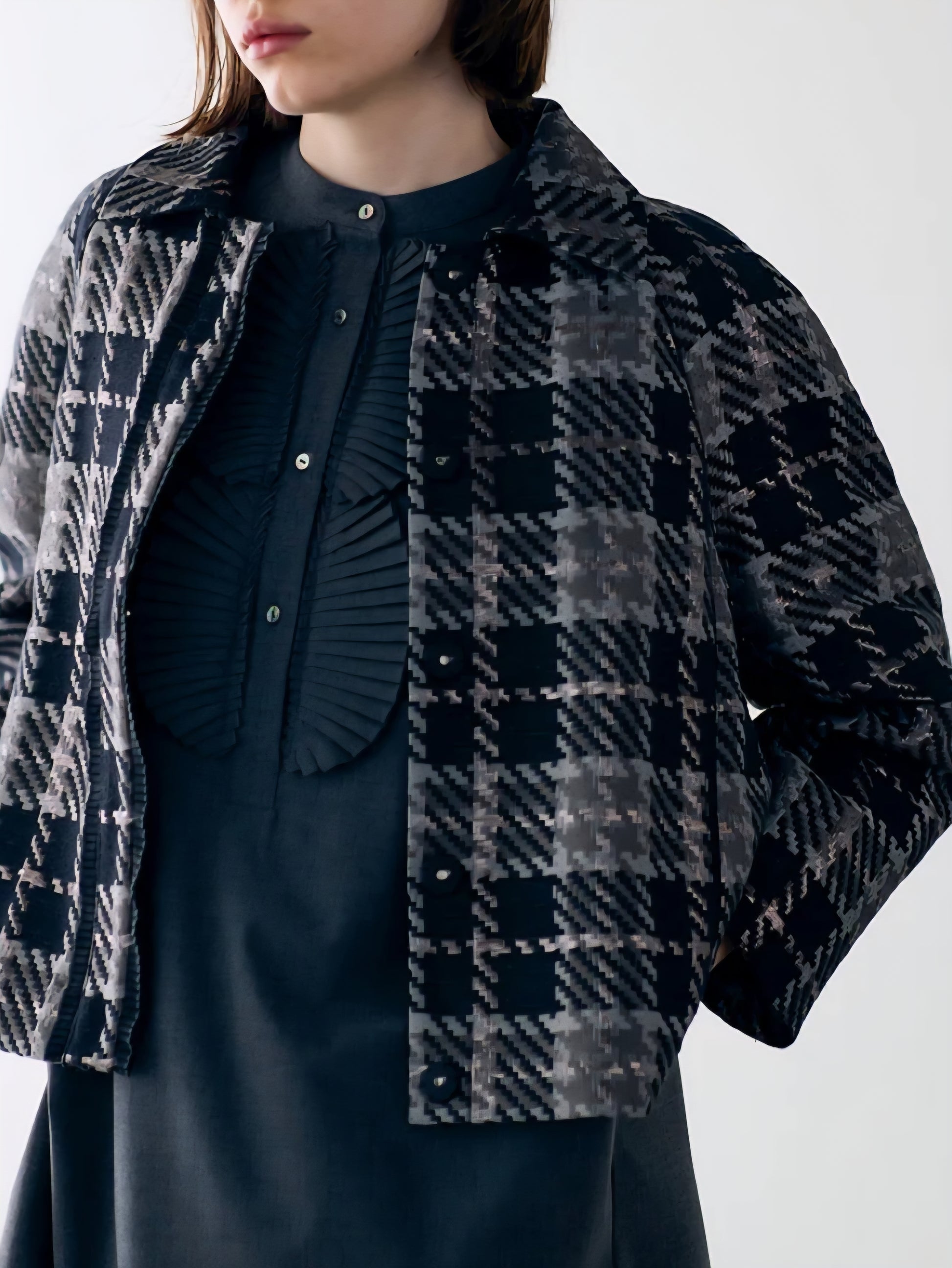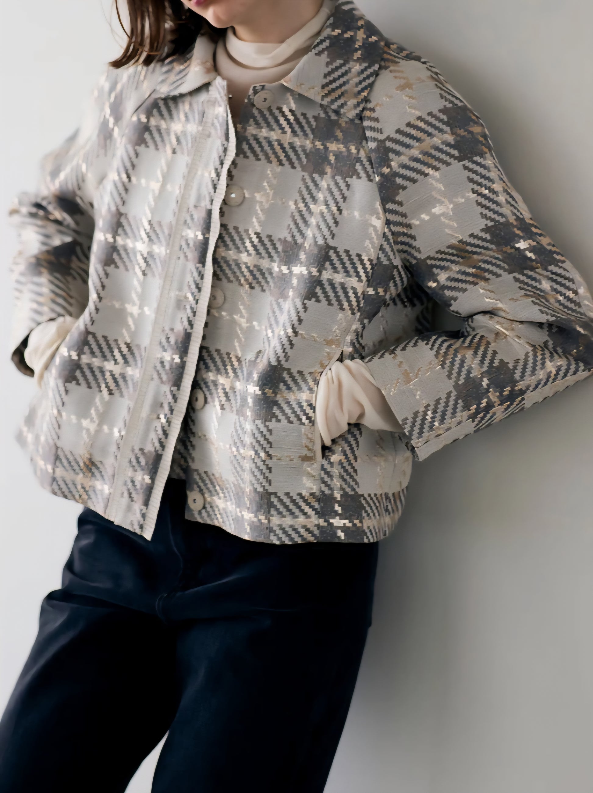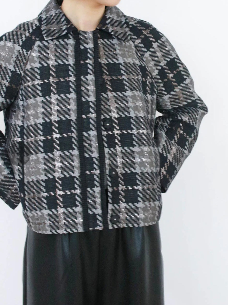 インポートのジャガードチェック素材を使用したショートジャケット。