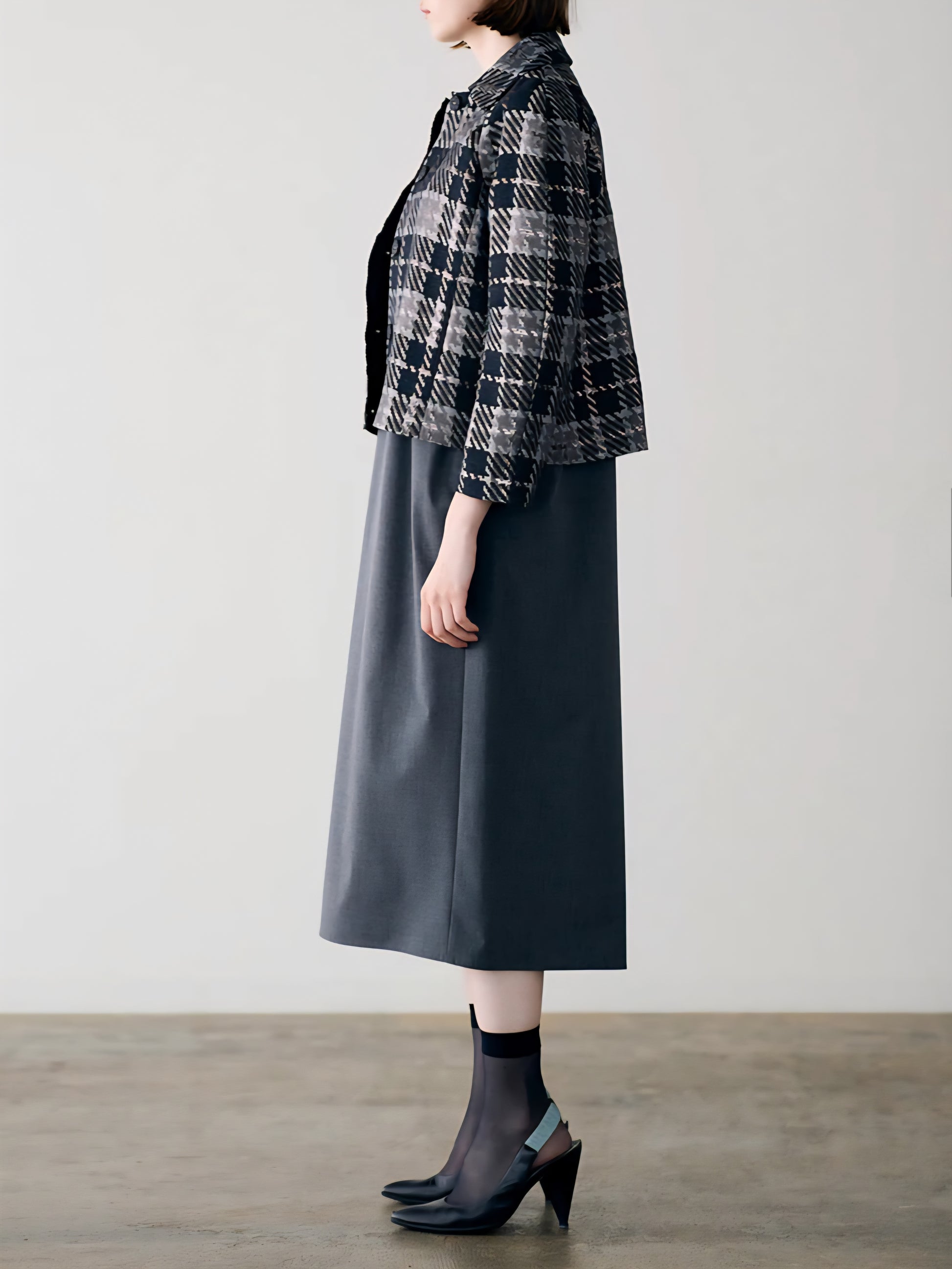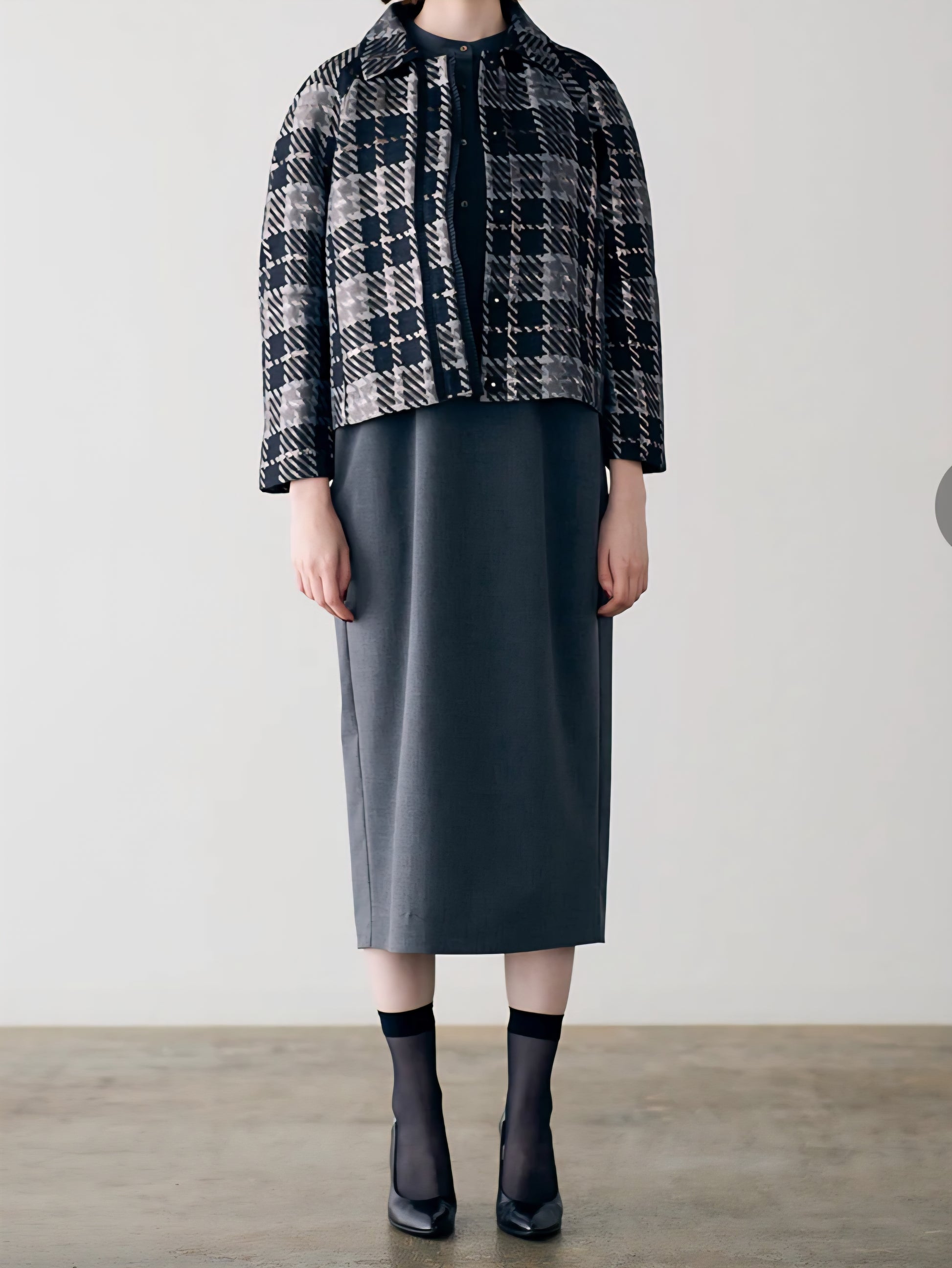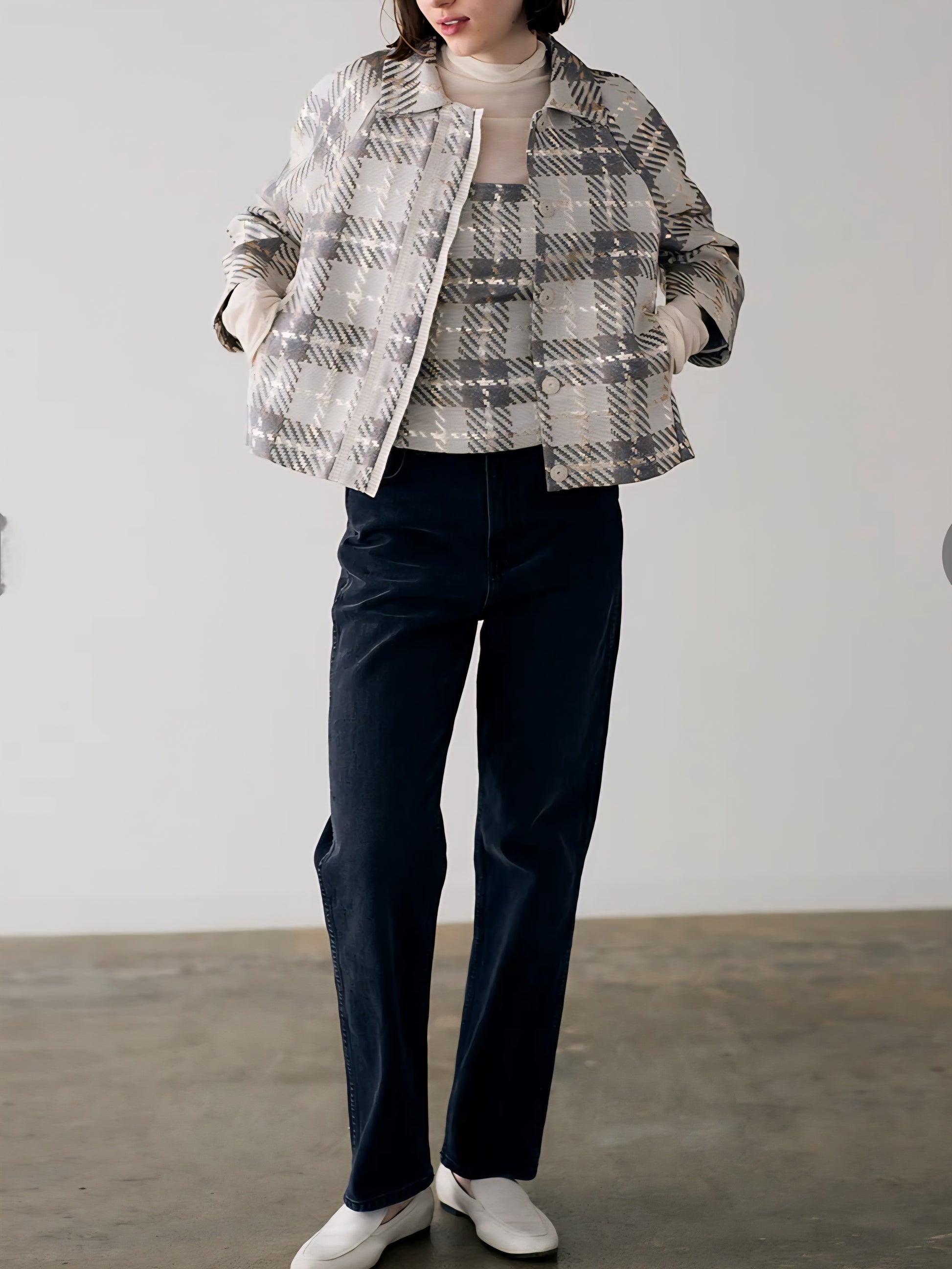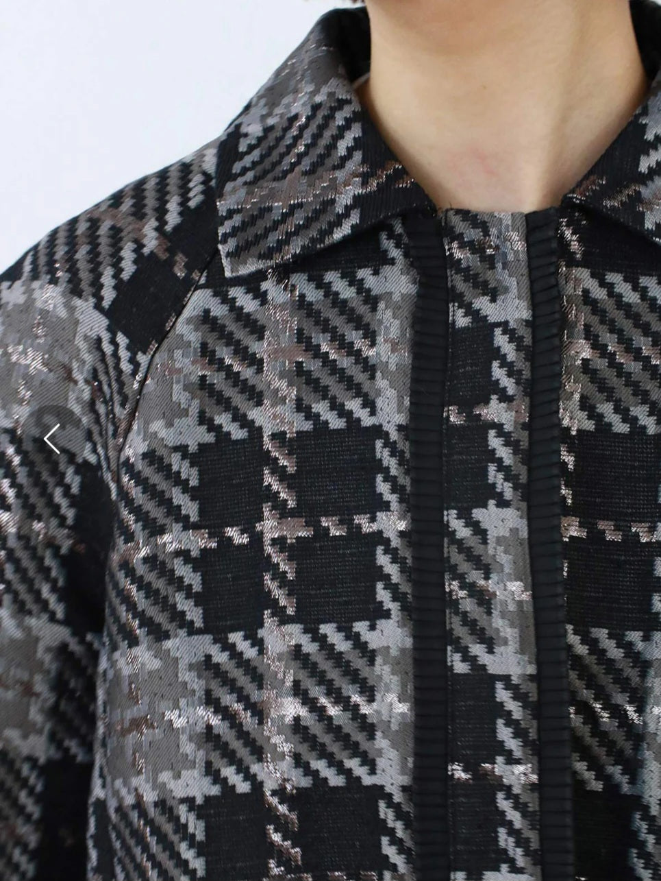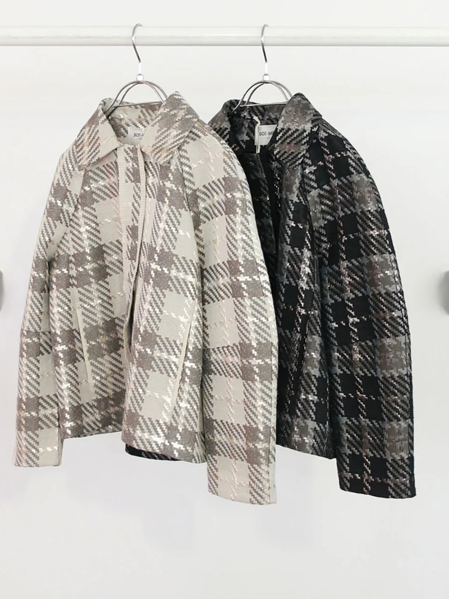インポートのジャガードチェック素材を使用したショートジャケット。