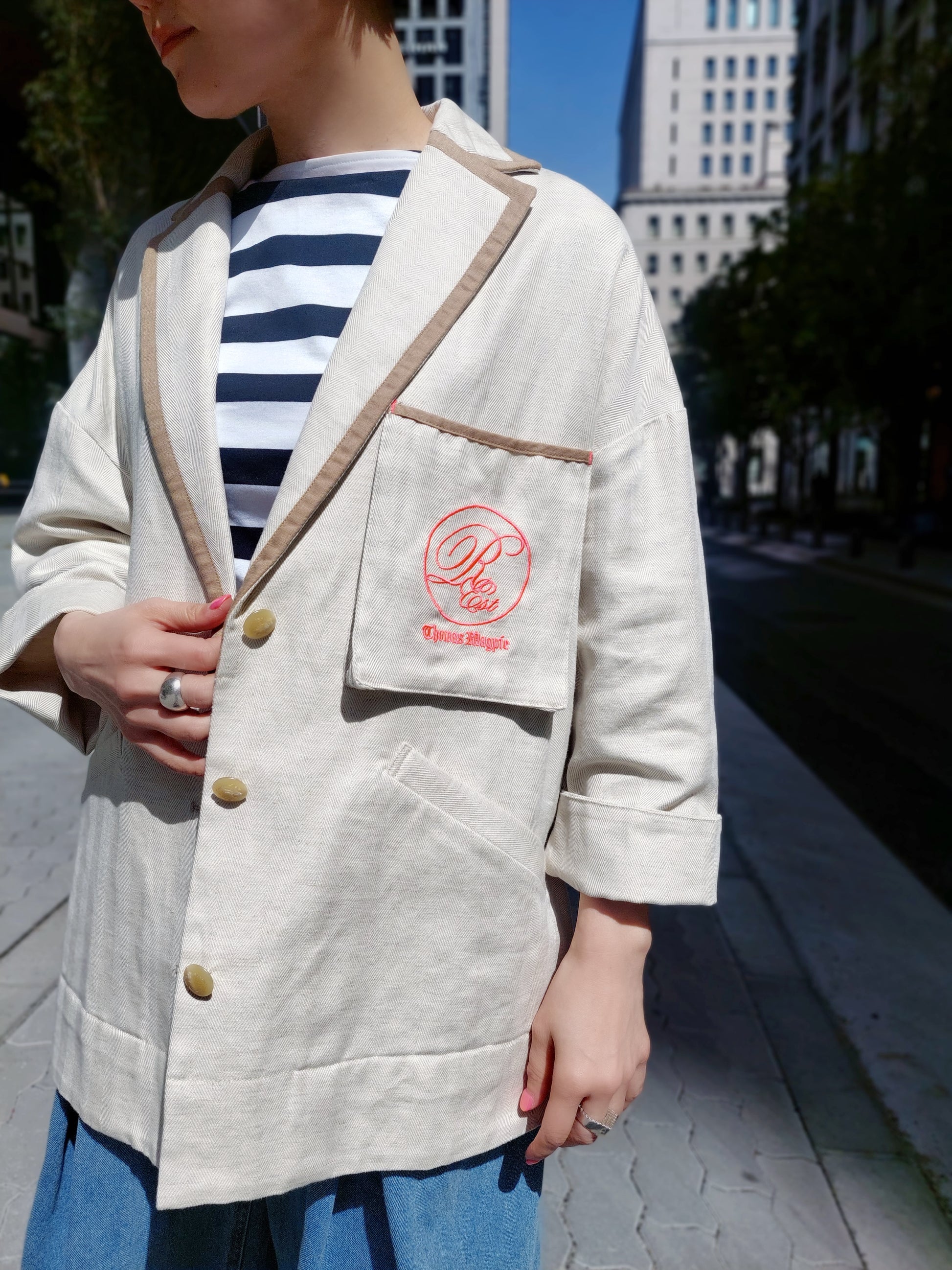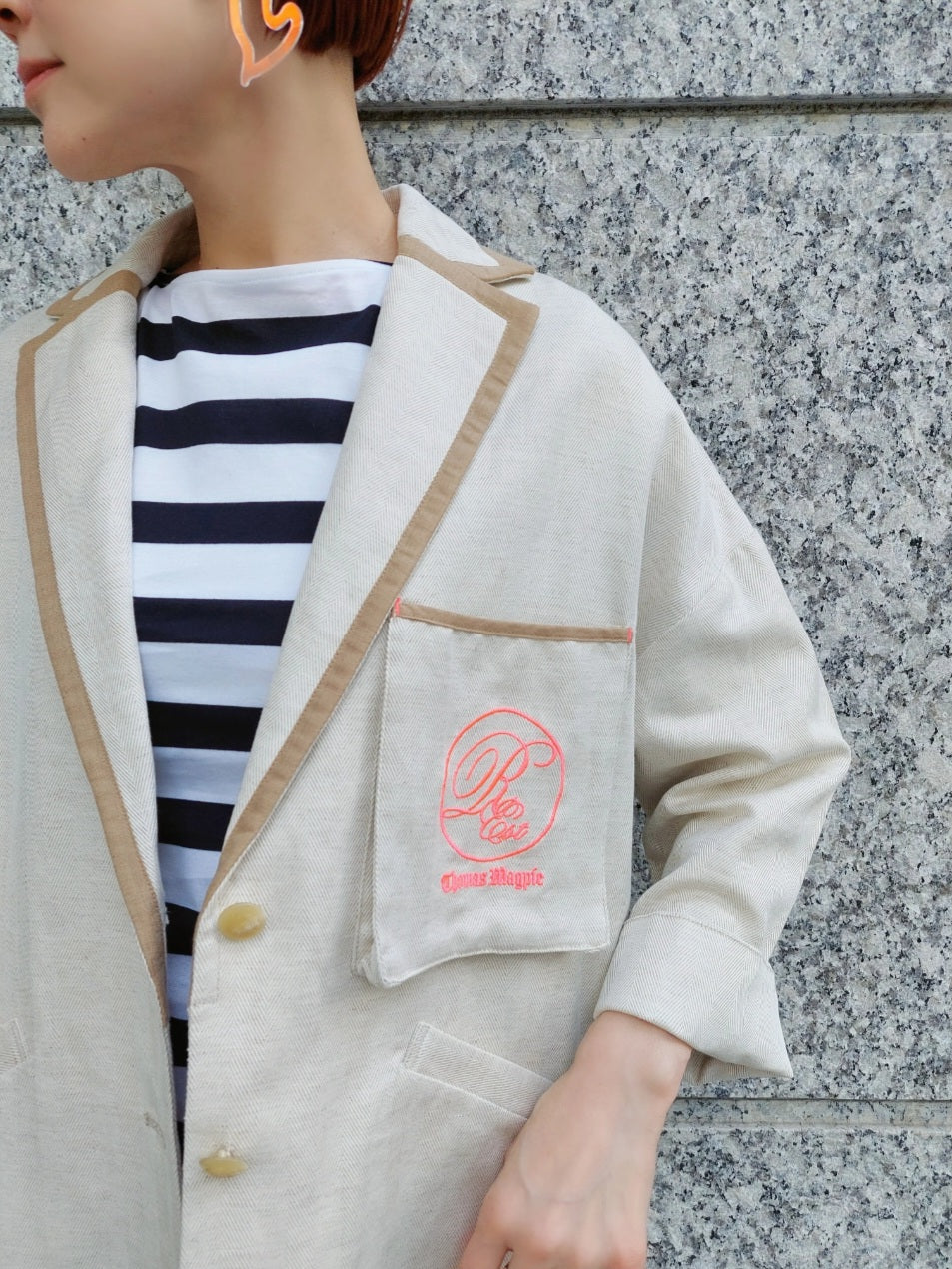 仕立ての美しいゆとりあるジャケットに、衿や背中は別カラーのラインが施されたトーマスマグパイらしいデザインです!!