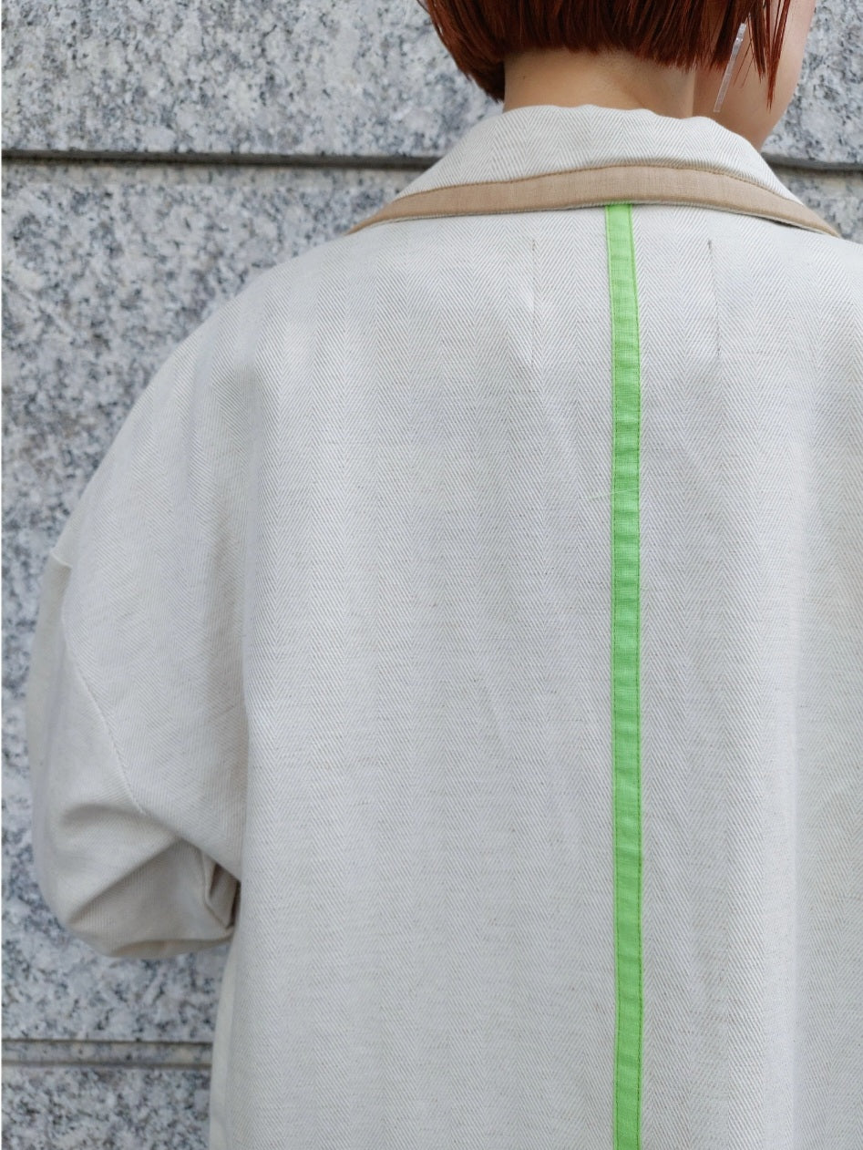 コットンリネンのオーバーサイズのテーラードジャケットは、ヘリンボーン生地に