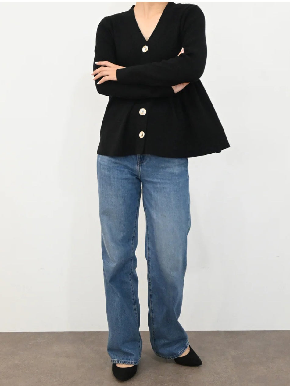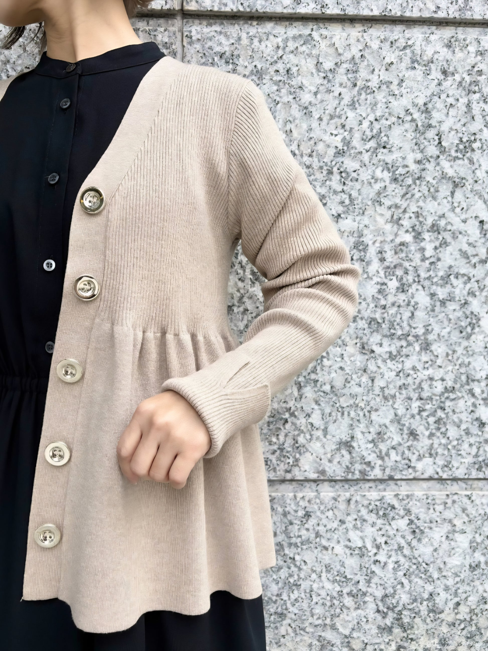 大きめのボタンが目を惹く女性らしいペプラムシルエットが可愛いカーディガンが登場♡