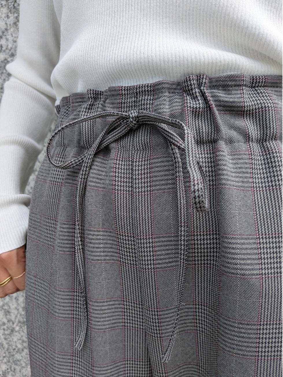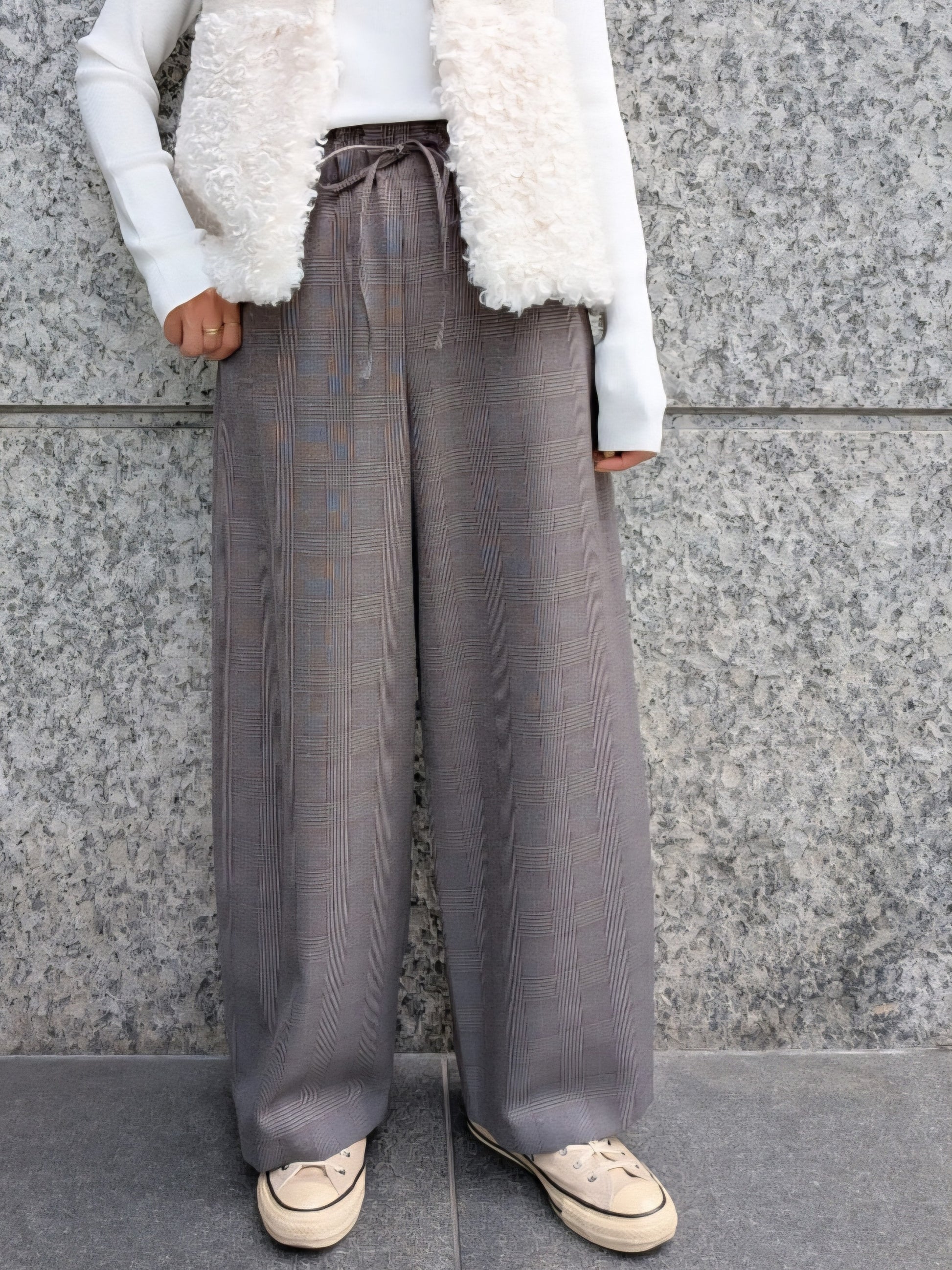 取り入れやすい控えめなチェック柄と太すぎないシルエットがこなれ感のあるスタイルに♫