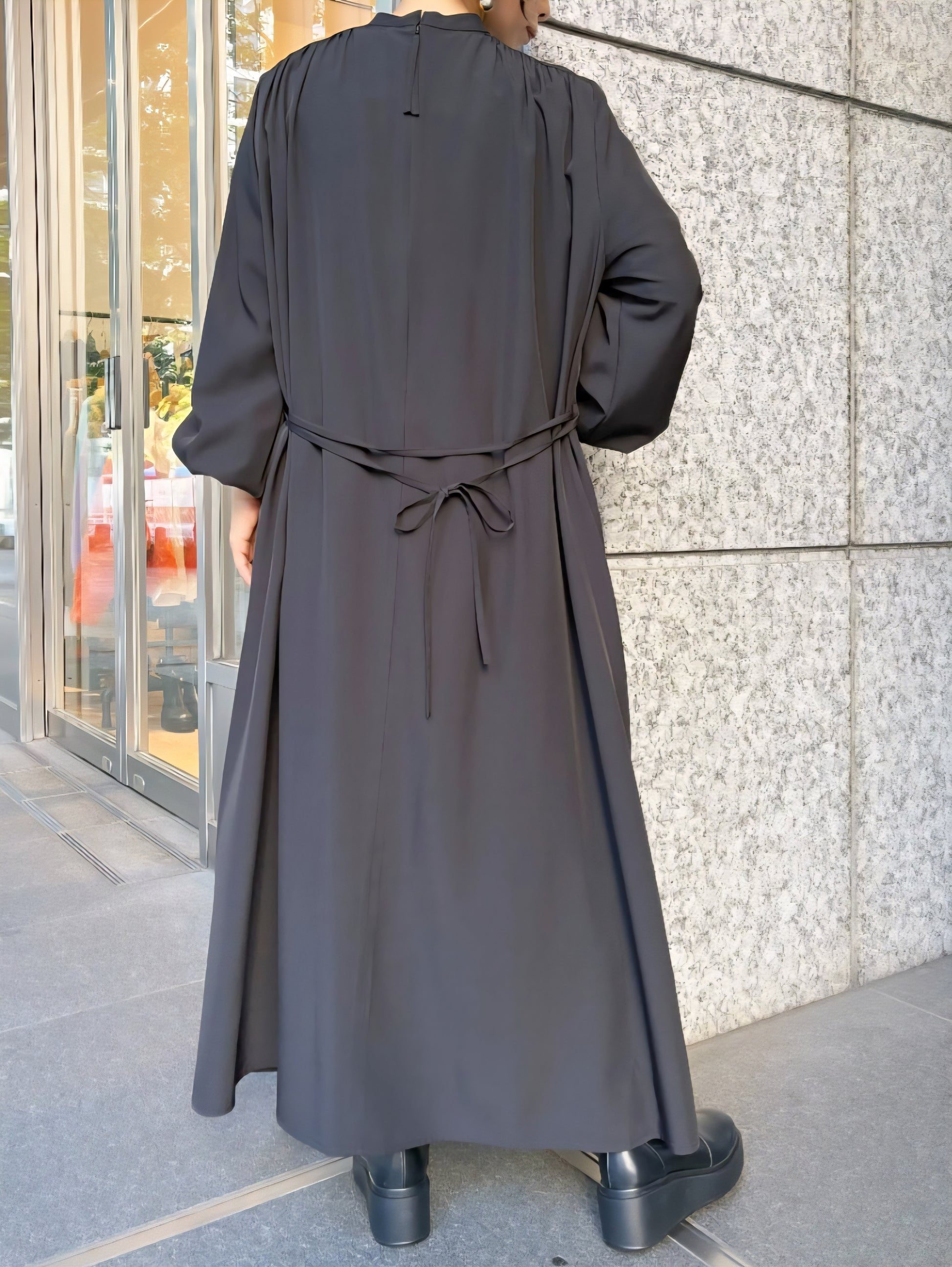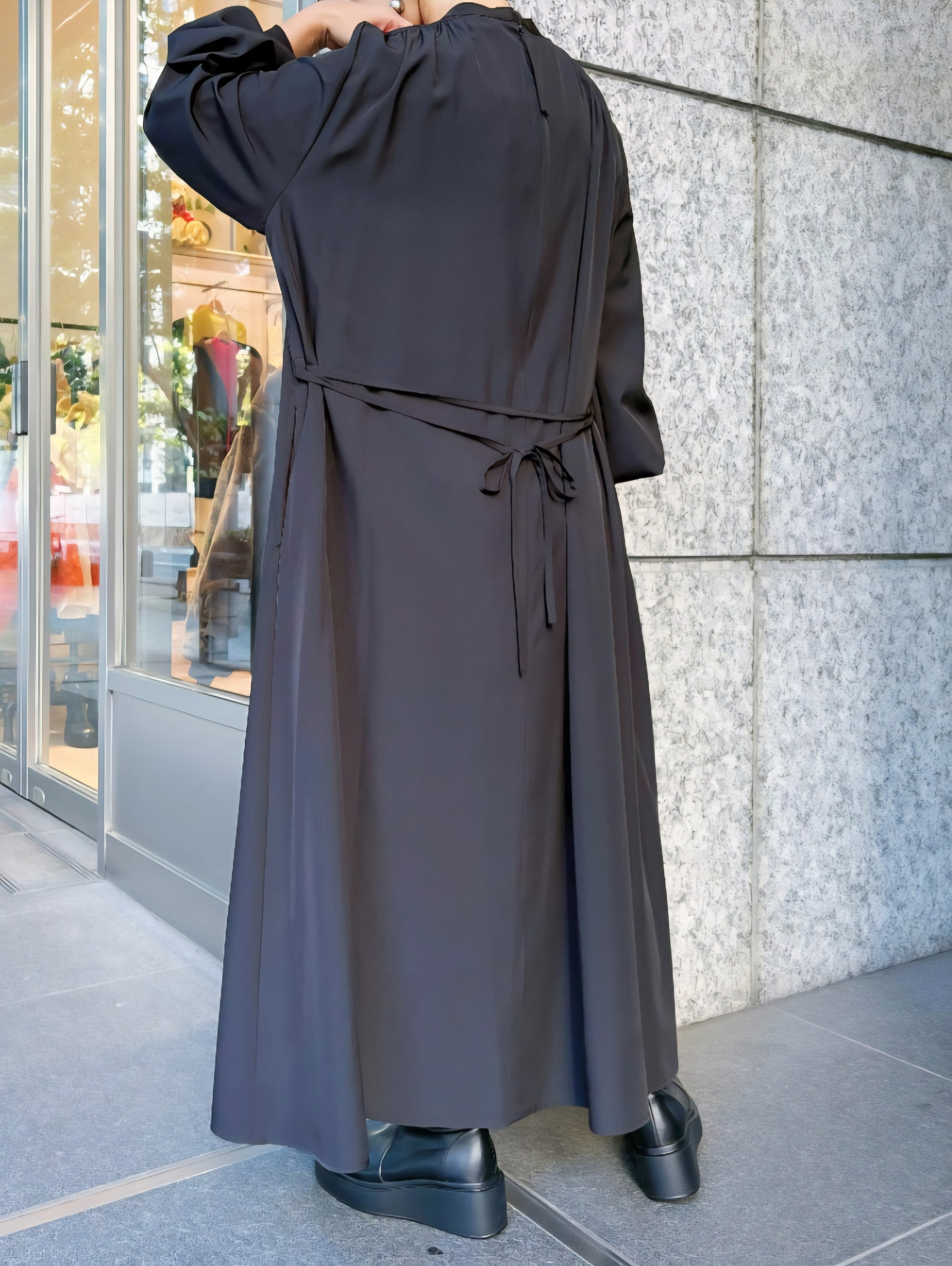 ゆとりのある身頃は身体のラインを拾わず華奢見えさせてくれ、