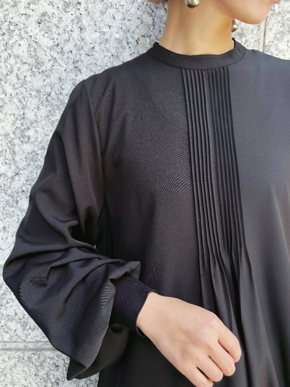 一枚で着やすく華やかさもあるデザインで、首元まで詰まったスタンドカラーと、ややボリュームのある袖が上品でクラシカルな印象を演出します♪