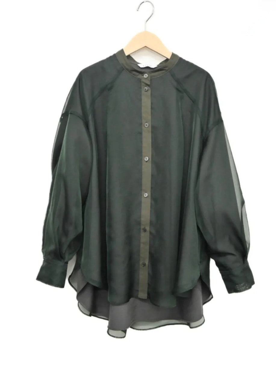 trois マットオーガンジーレイヤードバンドカラーブラウス