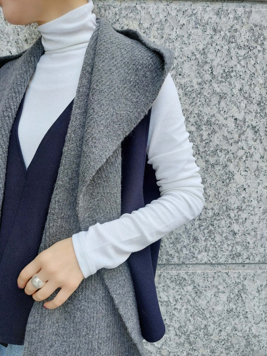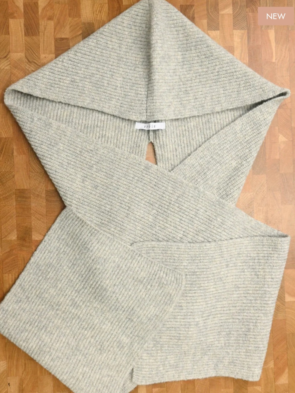 trois 畦編みフーディマフラー