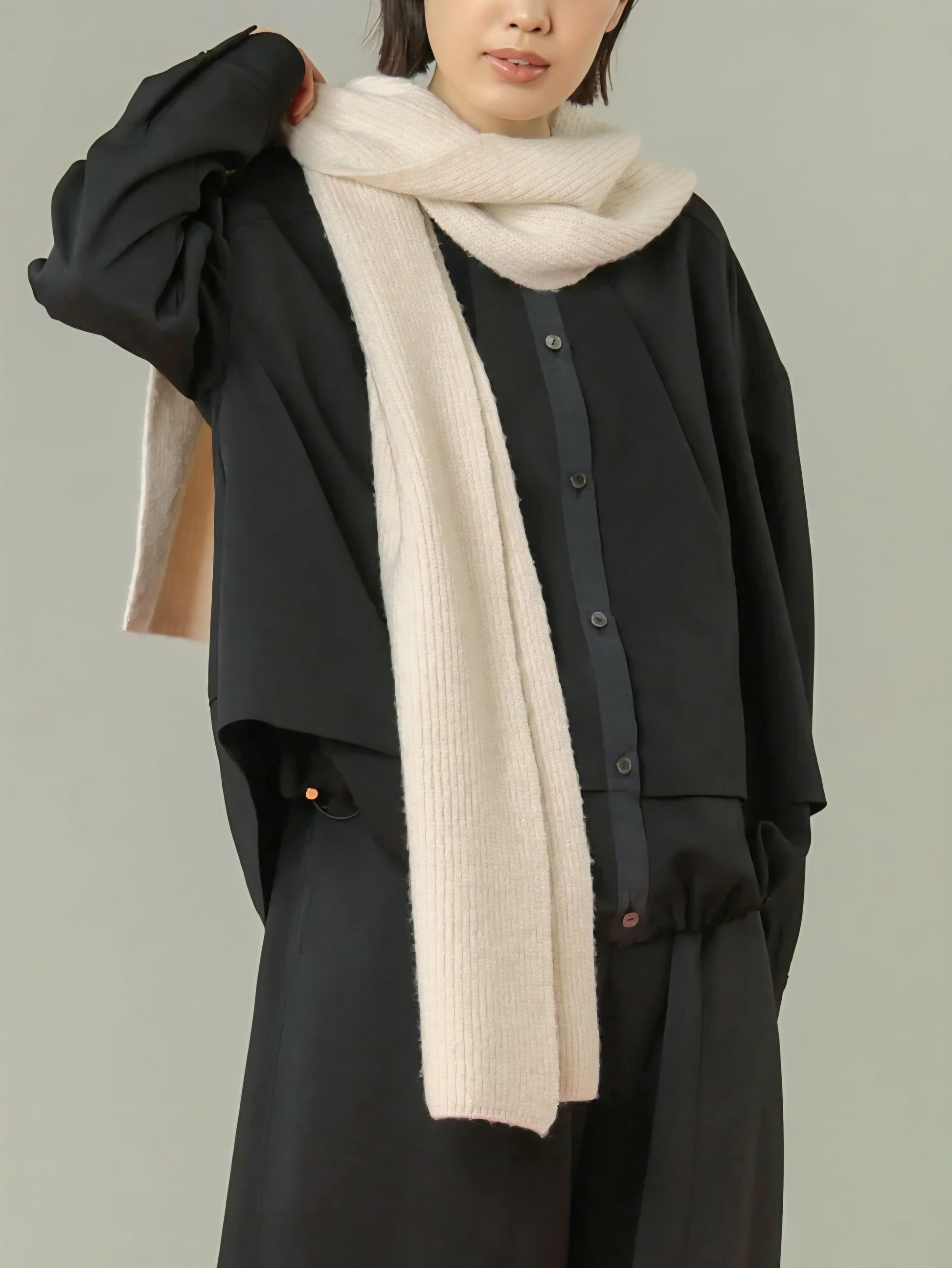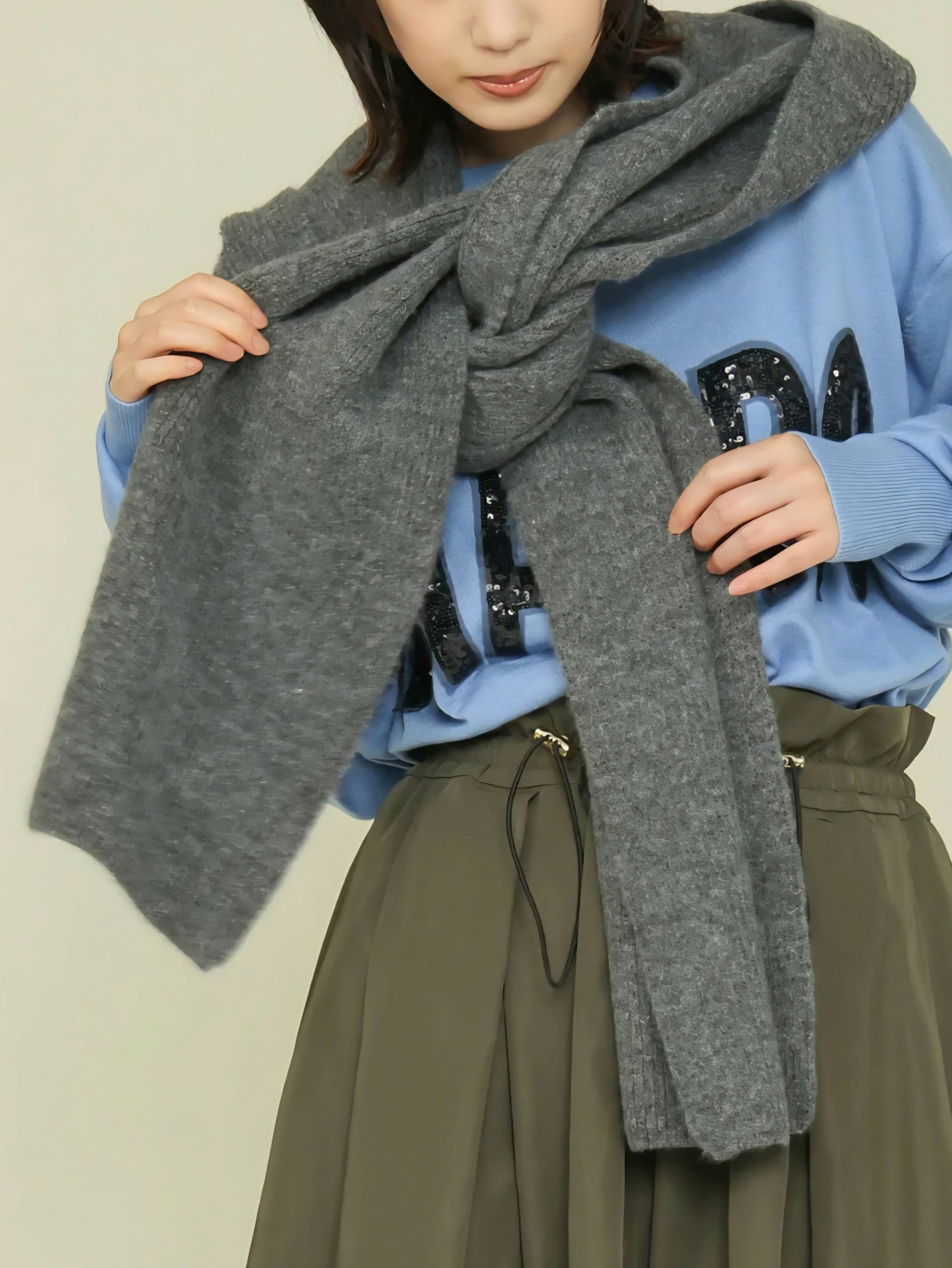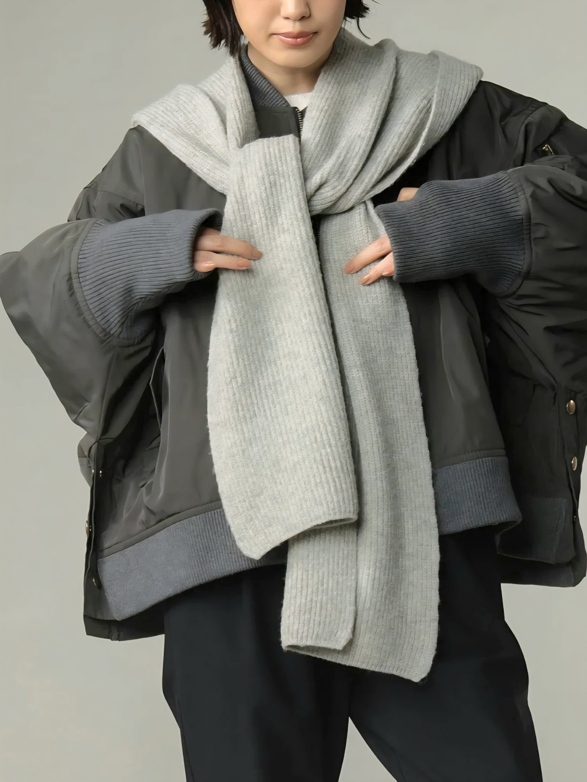 お好みの巻き方でアレンジでき、フードを被って防寒アイテムとして使ったりと幅広く活躍します◎