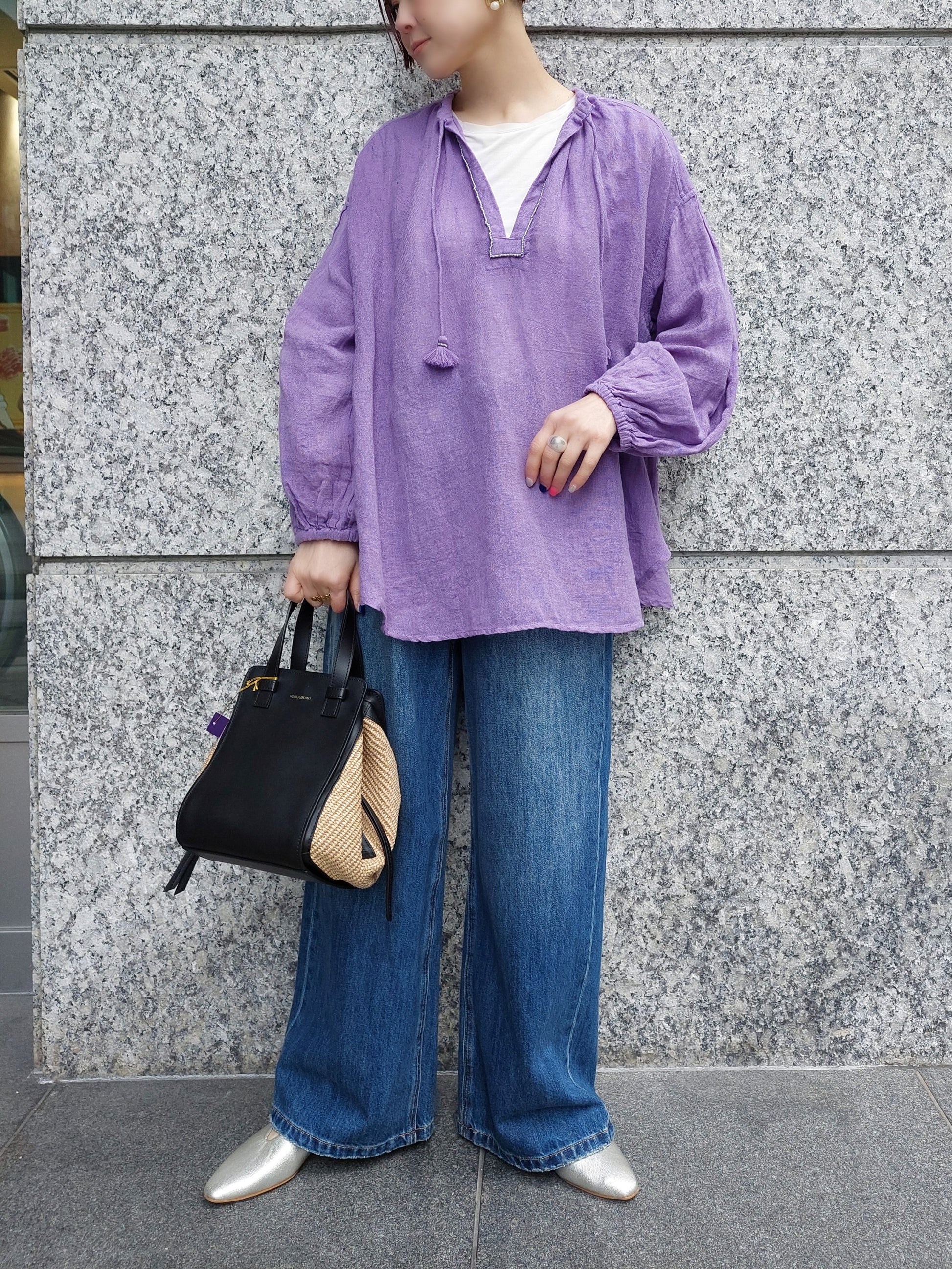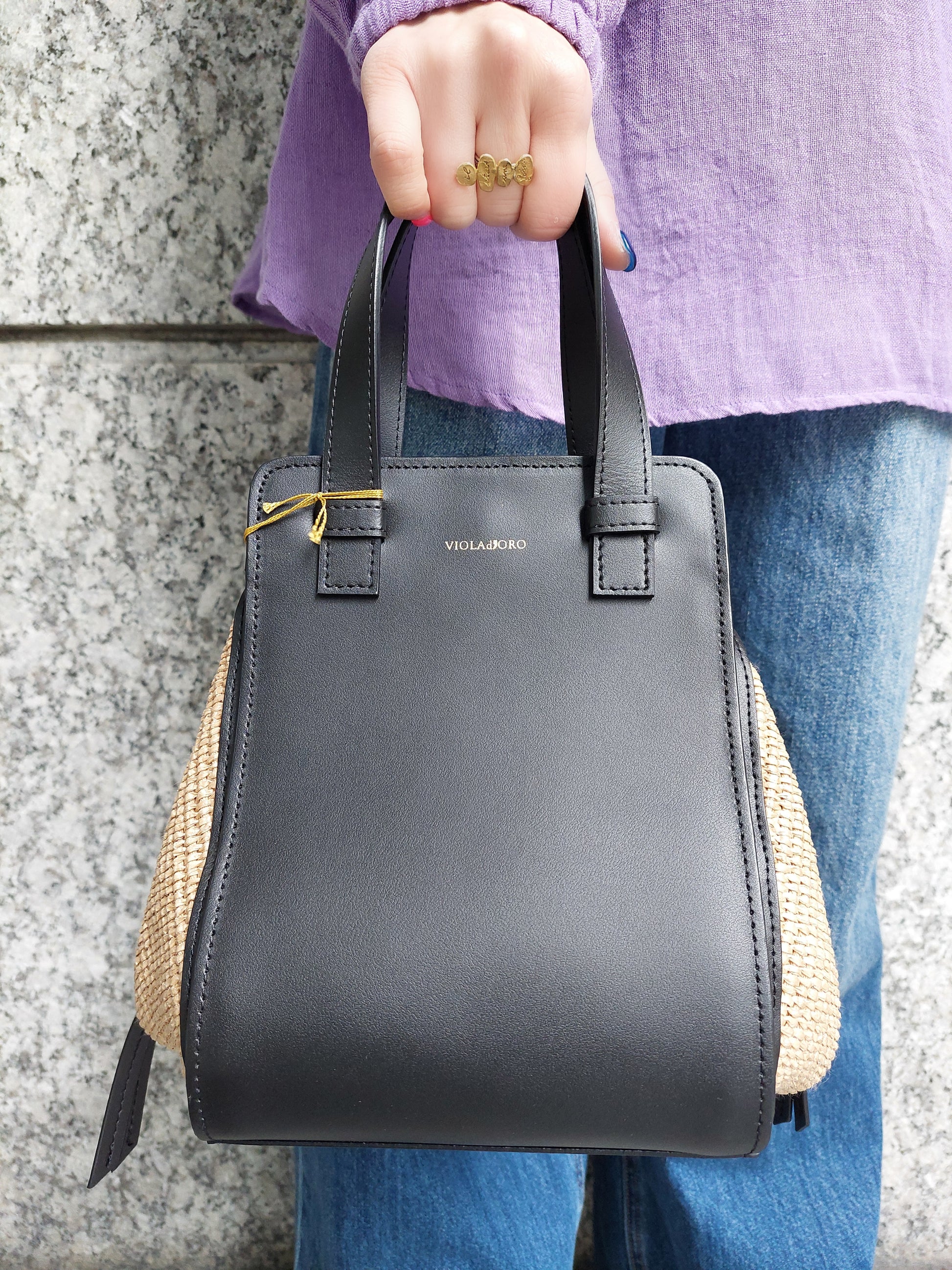 VIOLADORO SANDROラフィア×レザーコンビバッグ