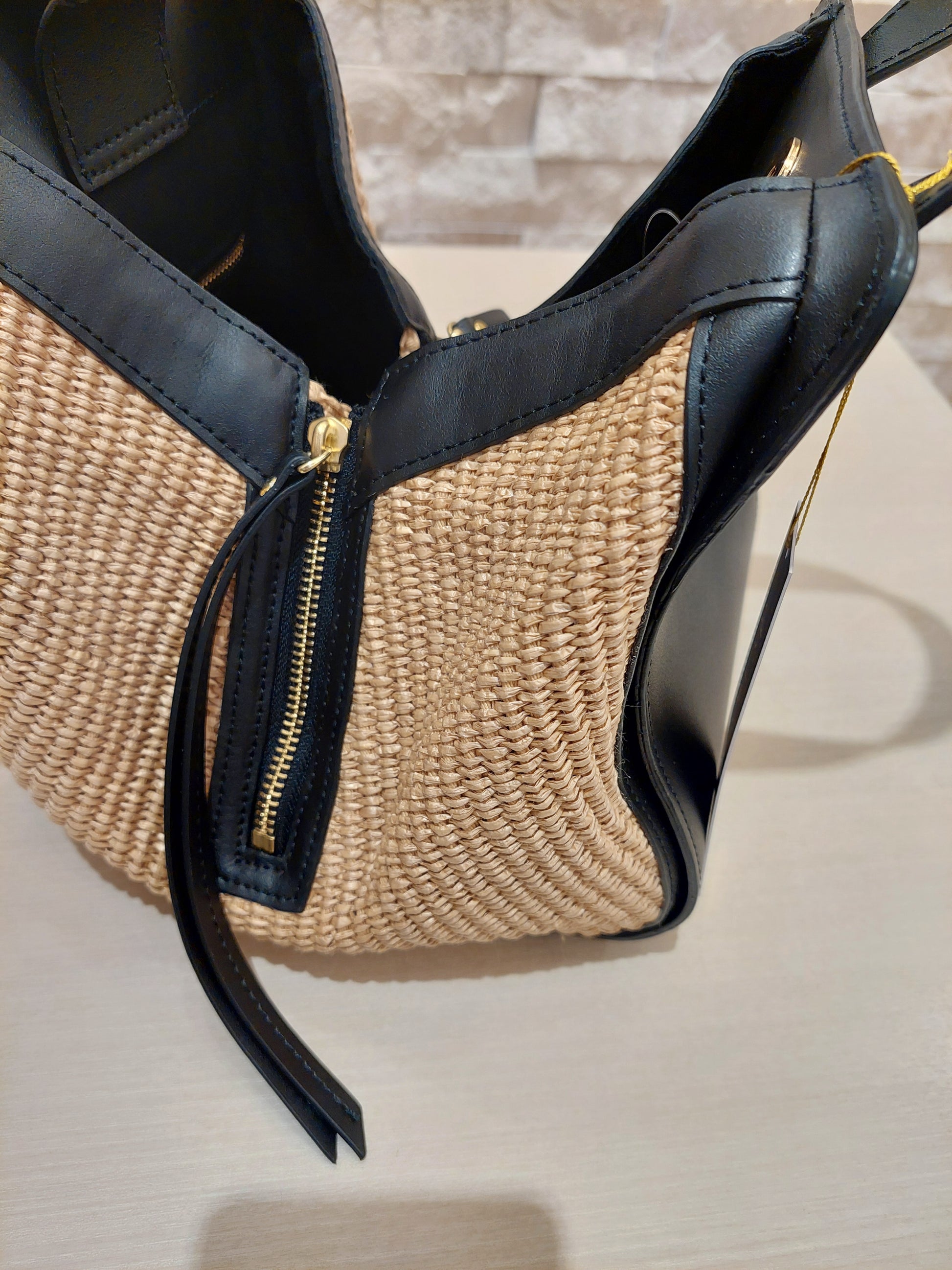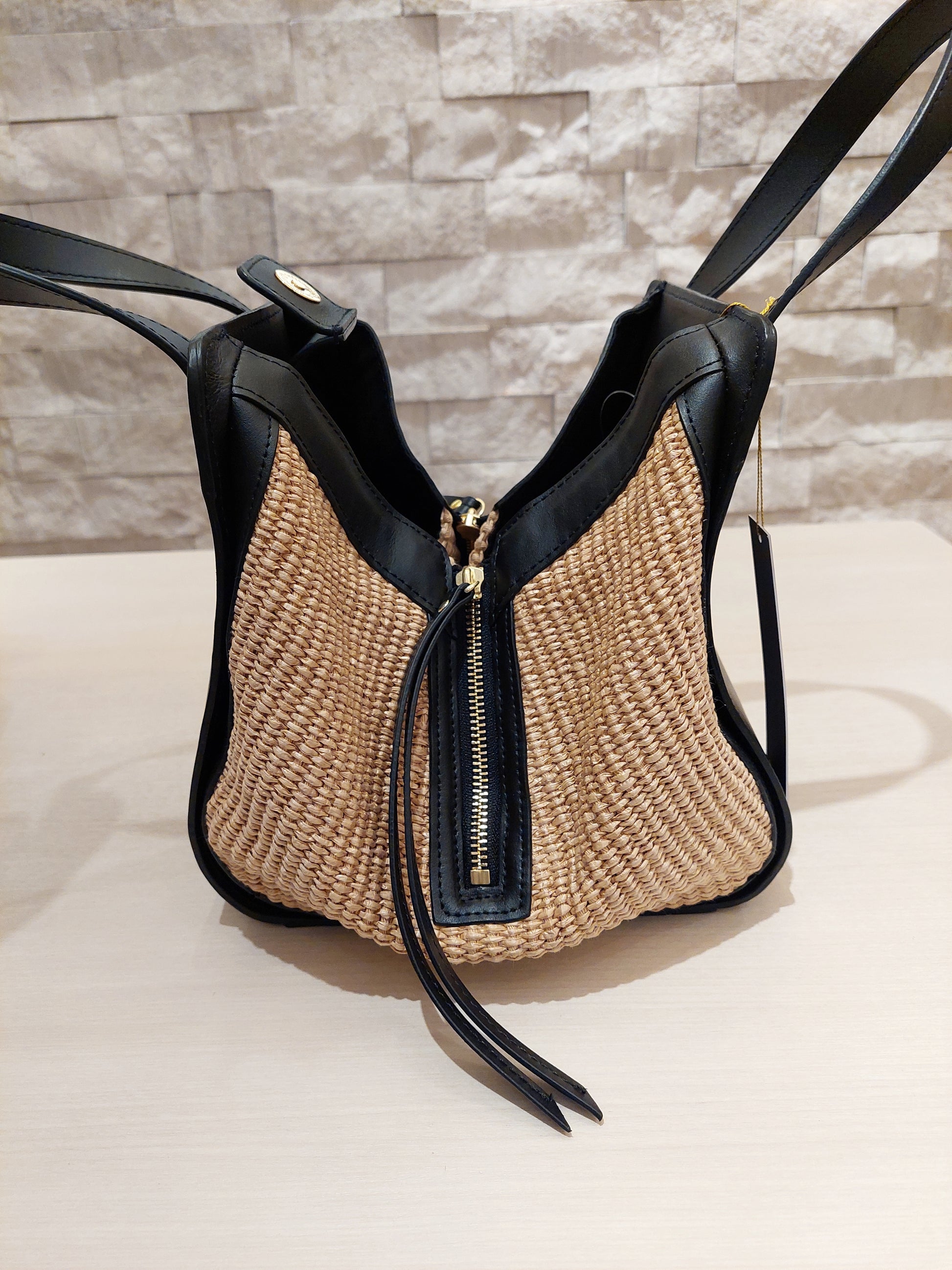 イタリアンラフィアシート レザーコンビ2WAYハンドバッグ☆