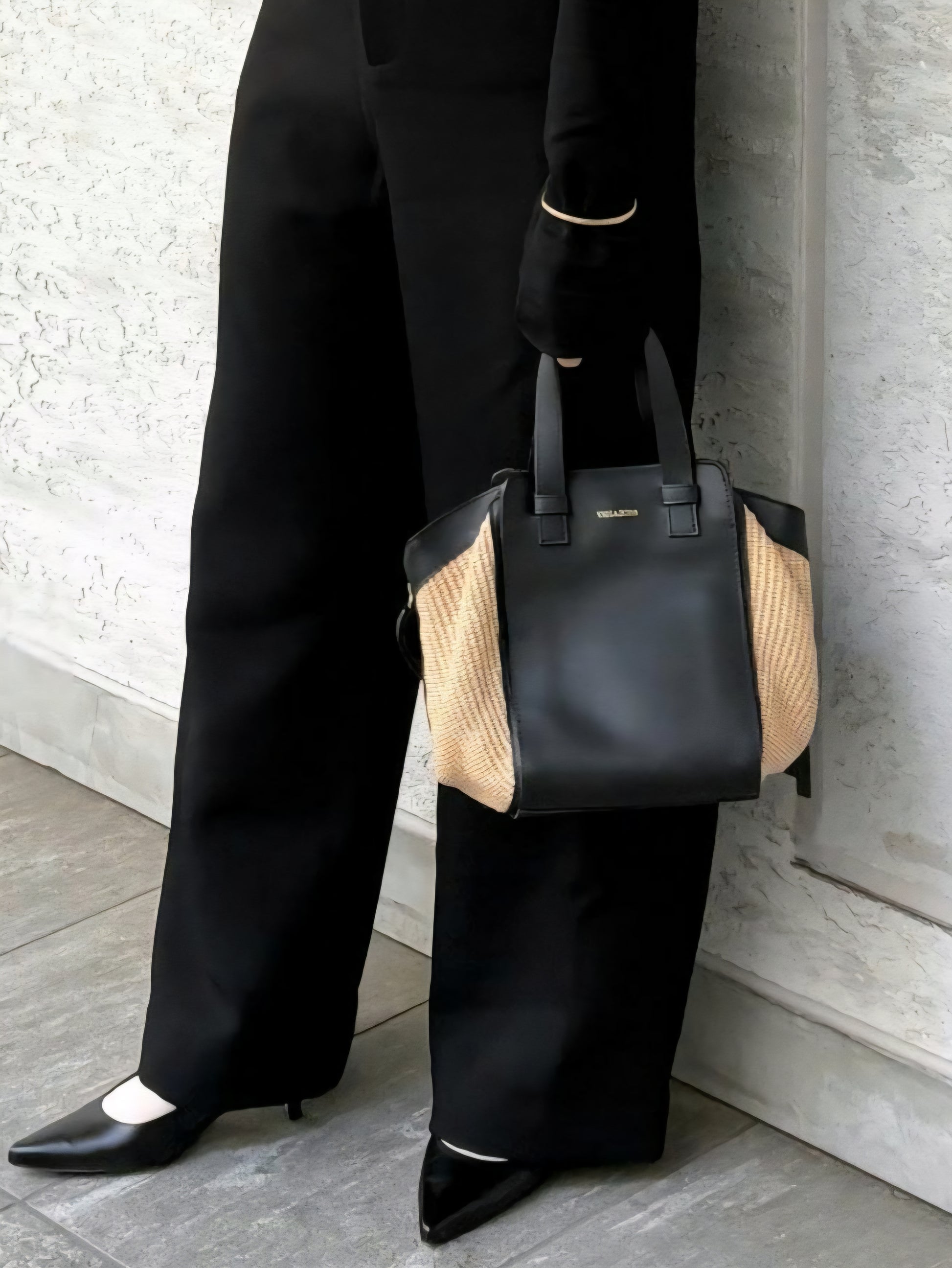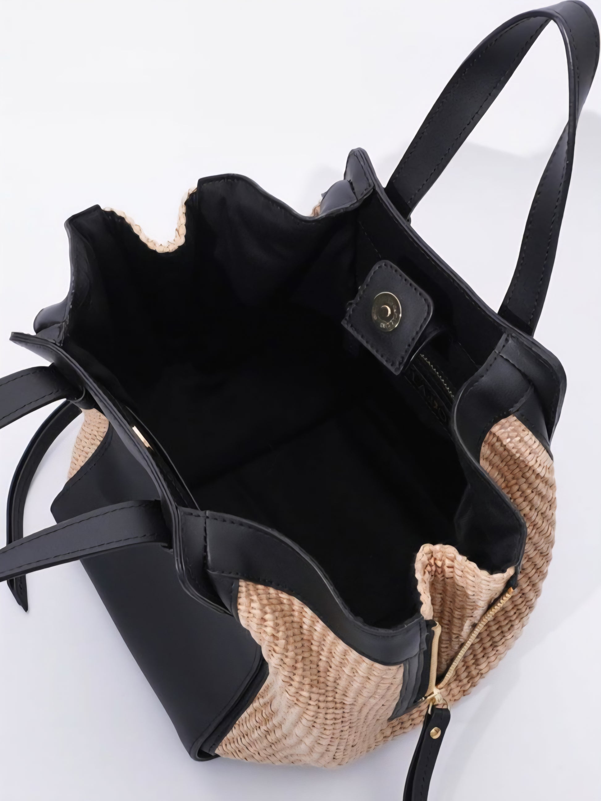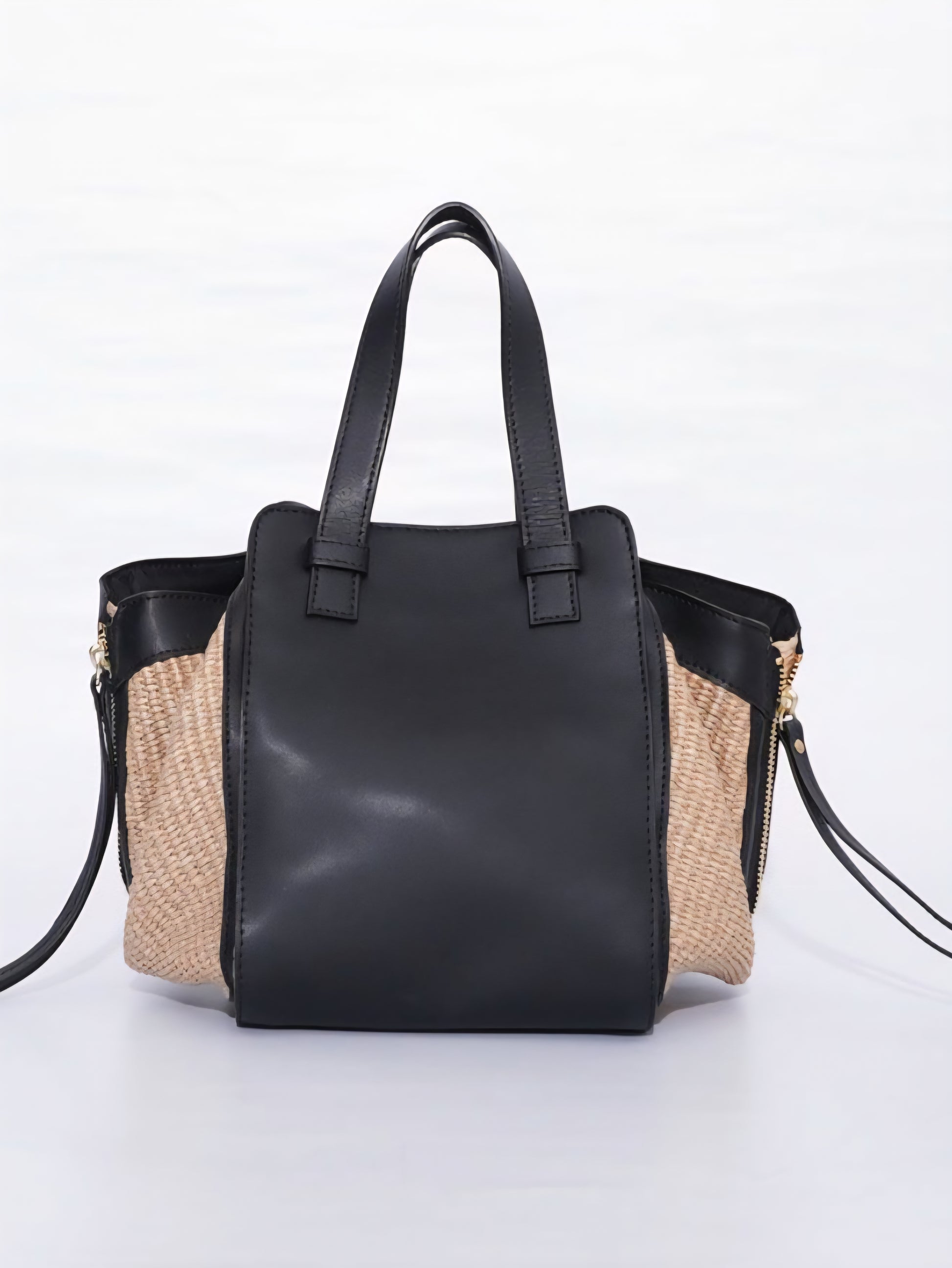 上品な風合いが魅力のラフィア調シートとレザーのコンビがアクセントになったハンドバッグ♡